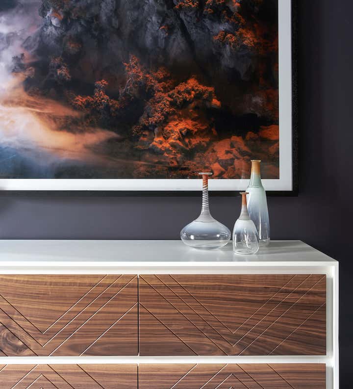 With a curated approach to their growing art collection, we layered in personal and statement-making pieces—ones with the depth and staying power to evolve alongside them. Contemporary yet soulful, saturated yet sophisticated, the result is a home that is as refined as it is energetic - tailored for work, play, and everything in between.
