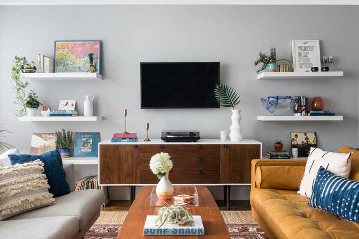 Vintage furniture & decor help to balance out this eclectic new build apartment in Boston.
