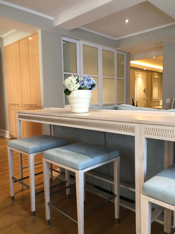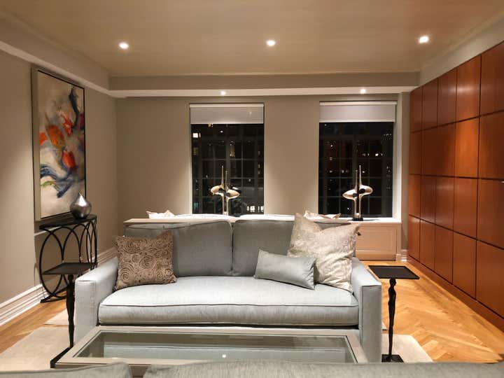 2 bedroom coop on New York Upper Westside in the Deco Eldorado apartment building. The design is transitional but with small hints to the architecture and history of the building