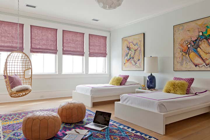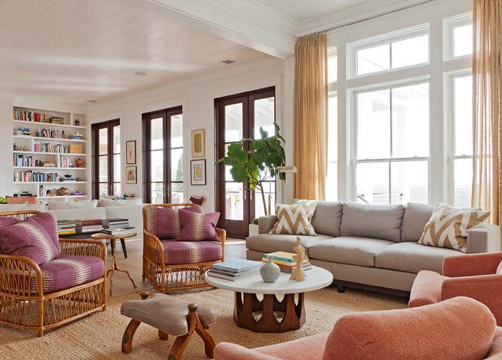 This custom built, waterfront home designed for a musician and his family draws inspiration from key pieces of art and the spectacular views. Textiles, original art and a sun kissed color palette make this home feel inviting and lived in.
