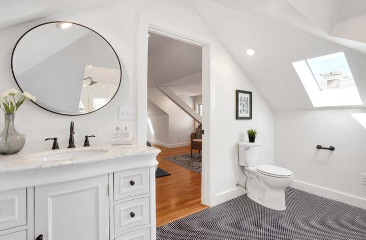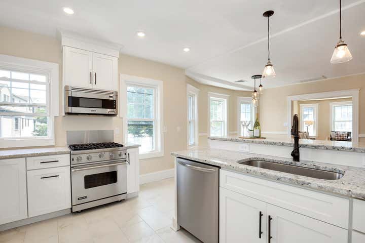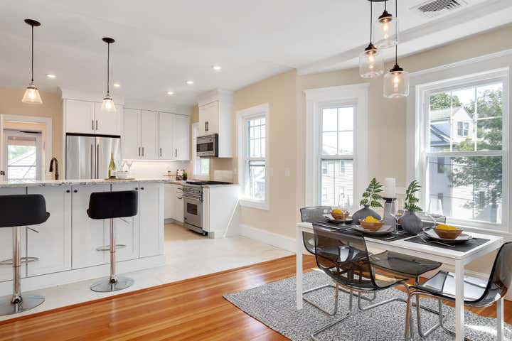 This was a gut renovation of a 1932 home in Cambridge, Massachusetts. The electrical was knob and tube, the insulation and plumbing were ancient and their was no sense of flow. The third floor had ceilings only 6'2" high so we took them back to the rafters and got a clearance of 10"! Huge undertaking and worth it ! The results are beautiful.