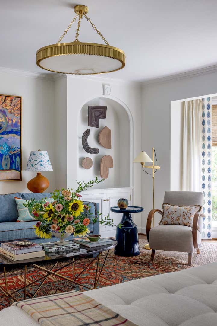 This 1950s home sits in a charming suburban neighborhood along Lake St. Clair, just steps away from the prestigious Country Club of Detroit. Originally built with exceptional materials and meticulous craftsmanship, it had been lovingly maintained by its previous owners. When Ramsay Nye began working on the project, the home offered a perfect blank canvas to bring their client’s vision to life — a vibrant, layered, and personal space that reflected his life experiences and tastes. While many nearby homes feature safe neutrals, our client sought a distinctly unique home, filled with character and individuality — a vision the design team eagerly embraced. Ramsay Nye incorporated meaningful art from the homeowner’s travels, infusing the interiors with a sense of personal history and richness. The result is a home that is truly one-of-a-kind, tailored to its owner in every detail.