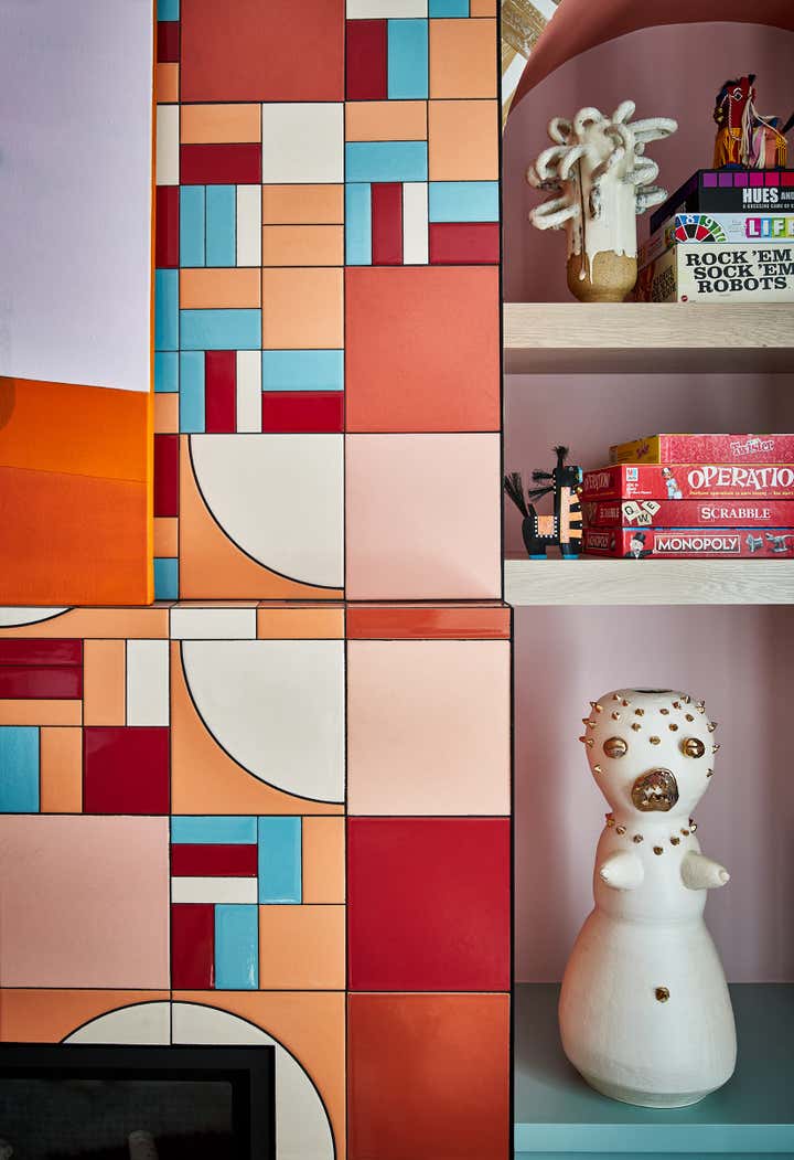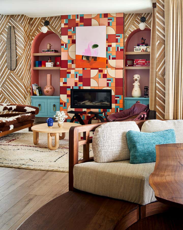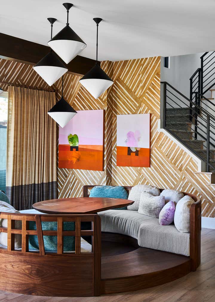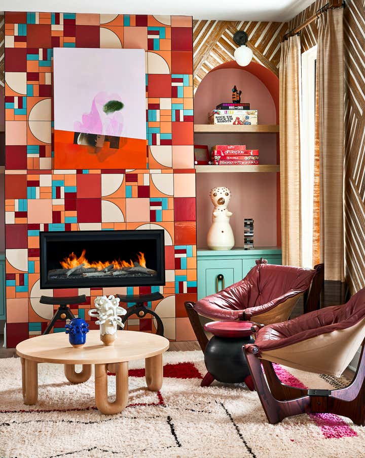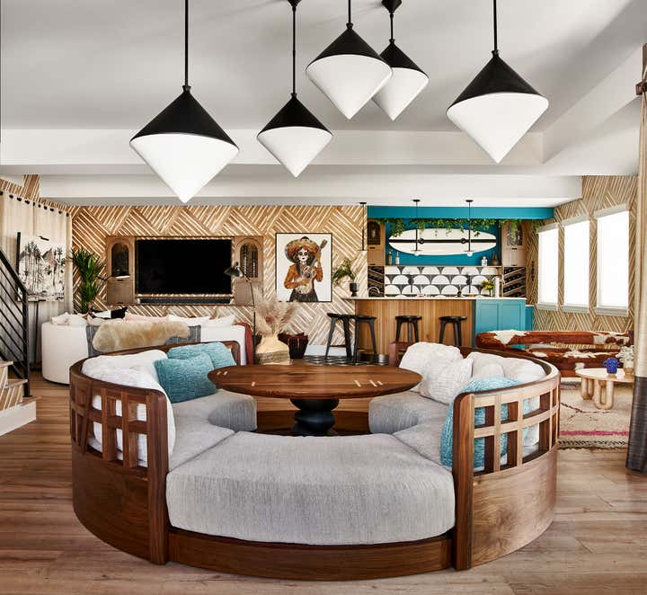 House Beautiful invited us to design and bring to life the downstairs rec-room in their 2020 Whole Home Concept House. Inspired by the effortless coziness of 1970’s home design and the intimacy of Japanese kotatsu tables, we created two lounge + cuddle zones in our space, which encourage all generations in a family to put their phones down and connect over conversation, board games, and puzzles.