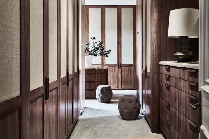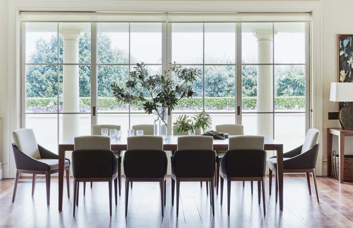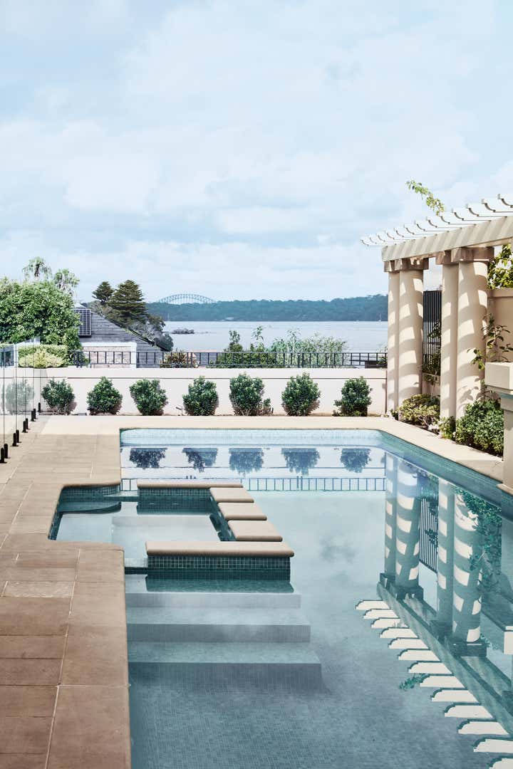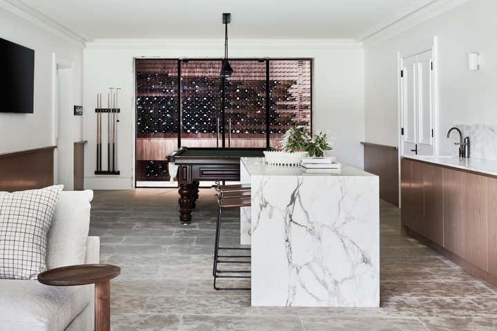 Original classical architecture by Michael Suttor informs the refresh of this expansive family home in Sydney’s eastern suburbs including a complete renovation of the lower ground floor to include guest quarters, tennis chill lounge, billiards bar, cellar, cinema, gym and wellness retreat with sauna, steam room, and laundry.