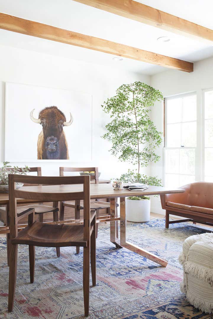 Collaboration on an imagined dining and living space featuring furniture by Monroe Workshop and The American Buffalo Photograph by Animal Print Shop.