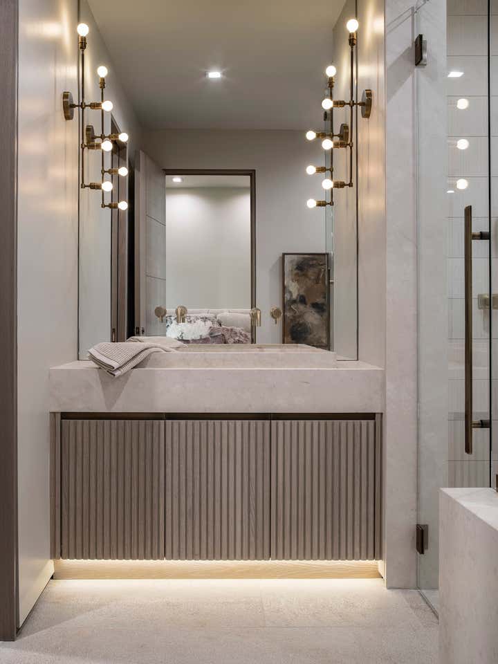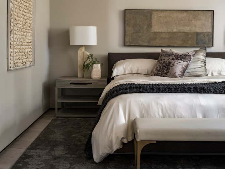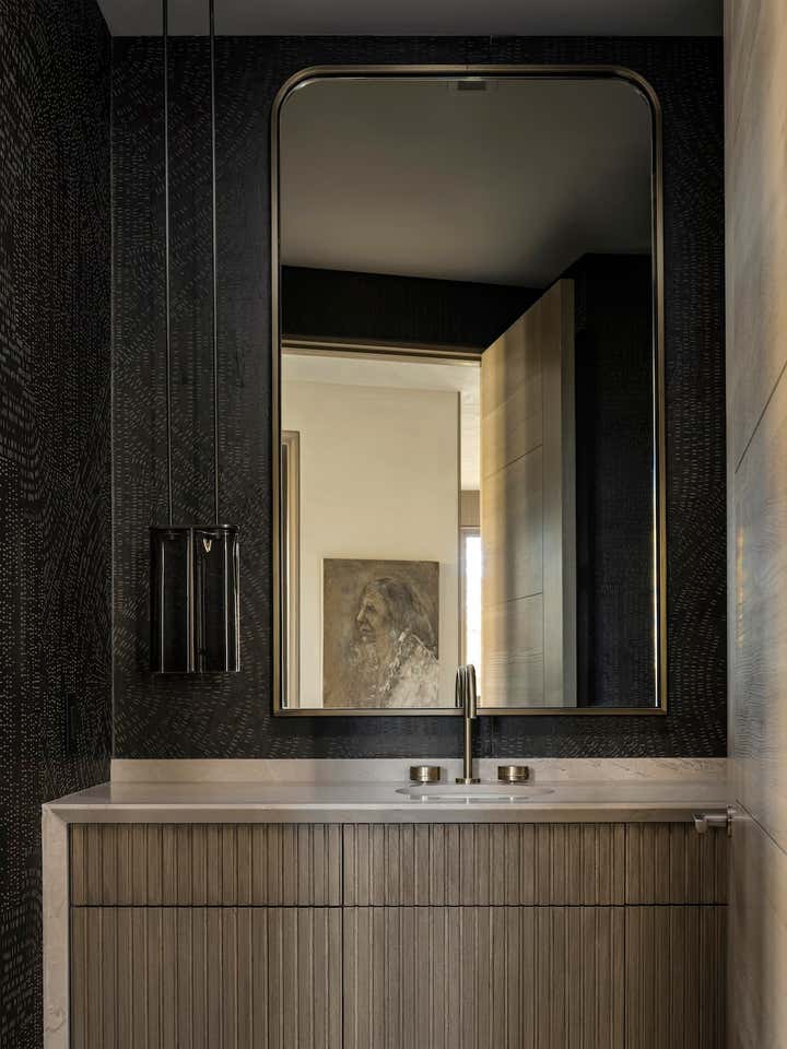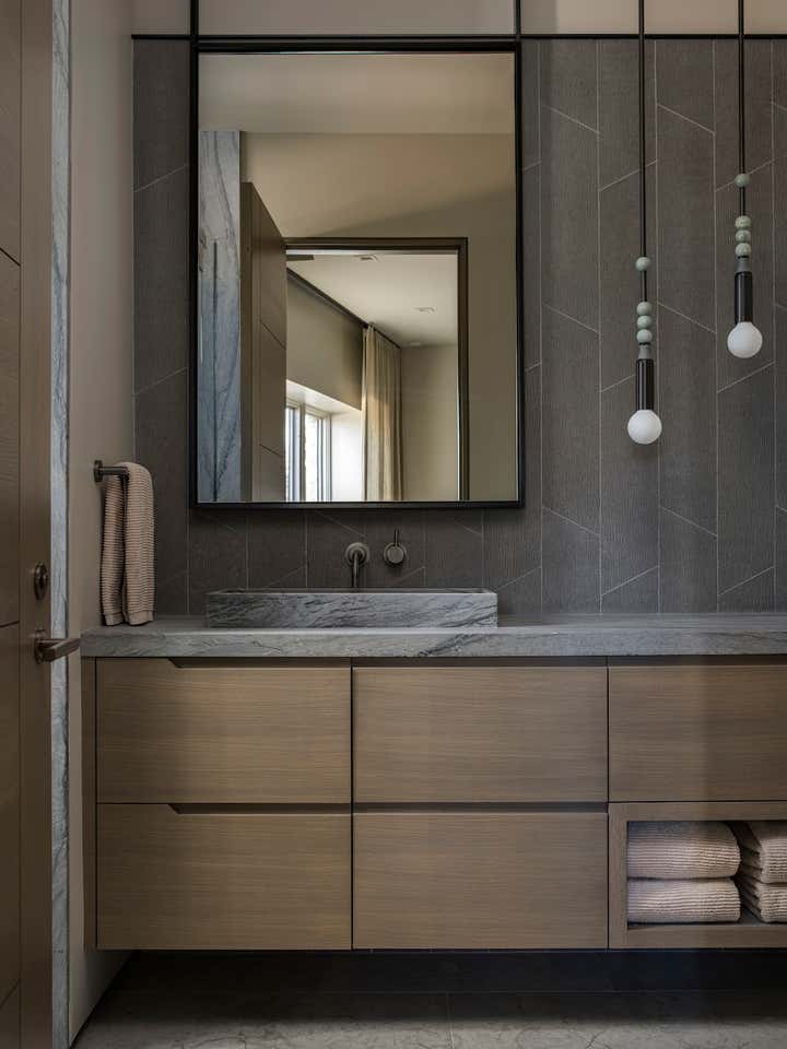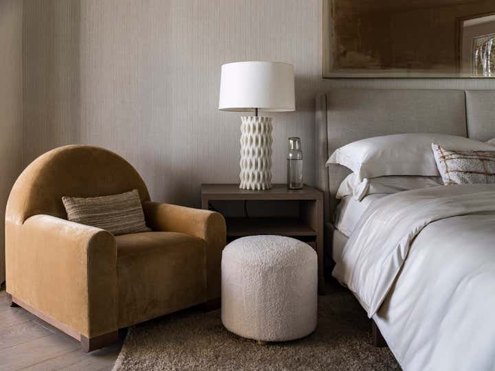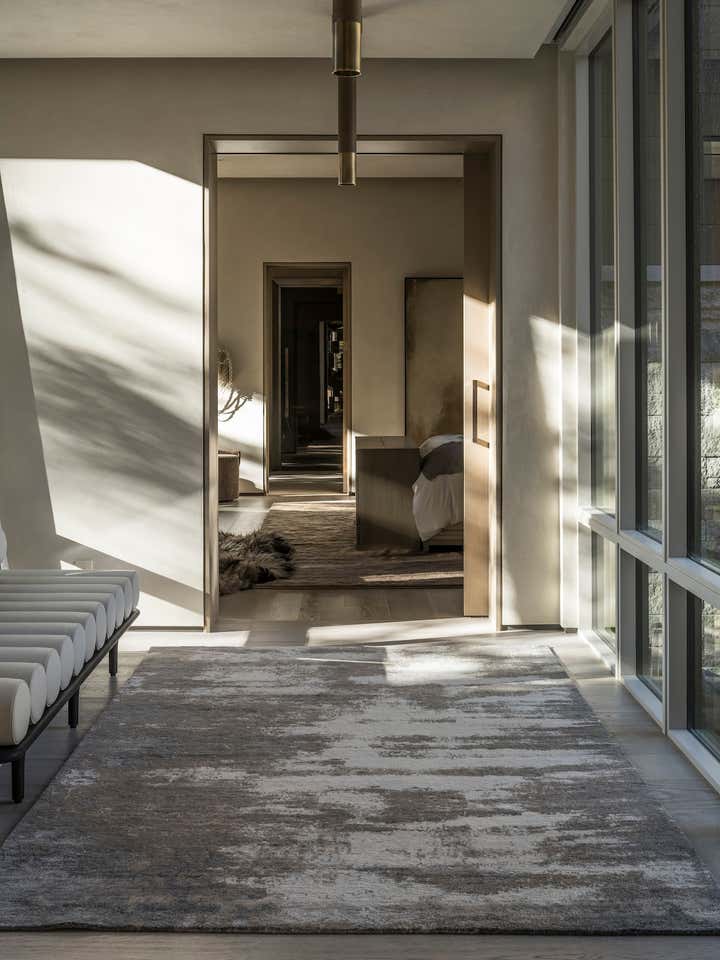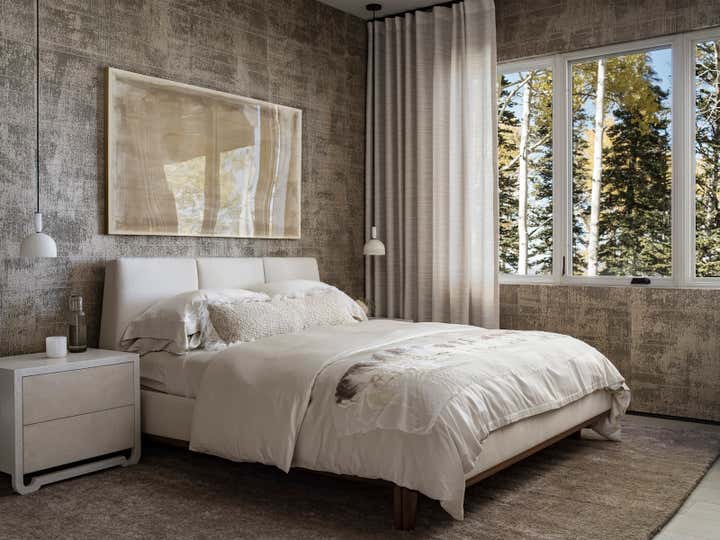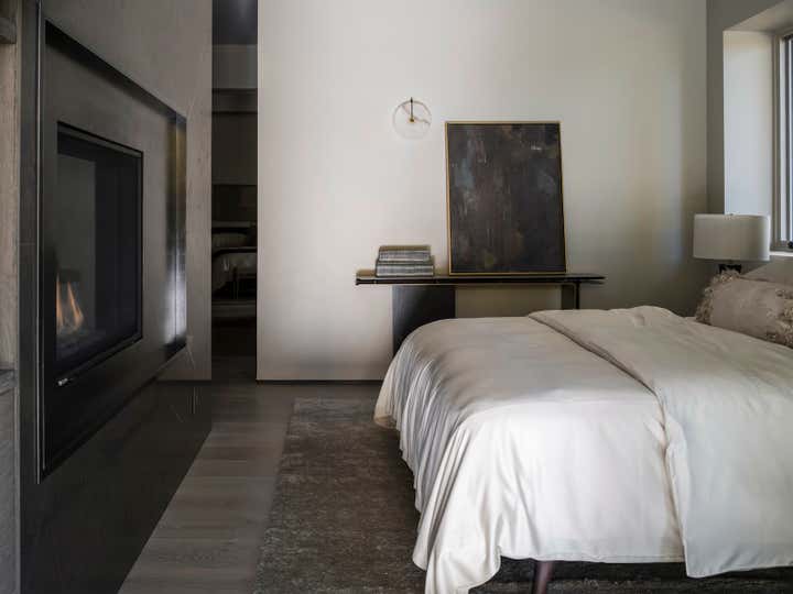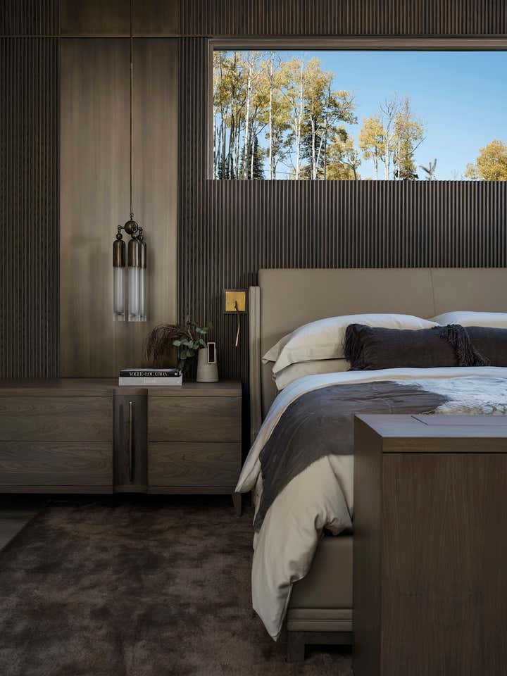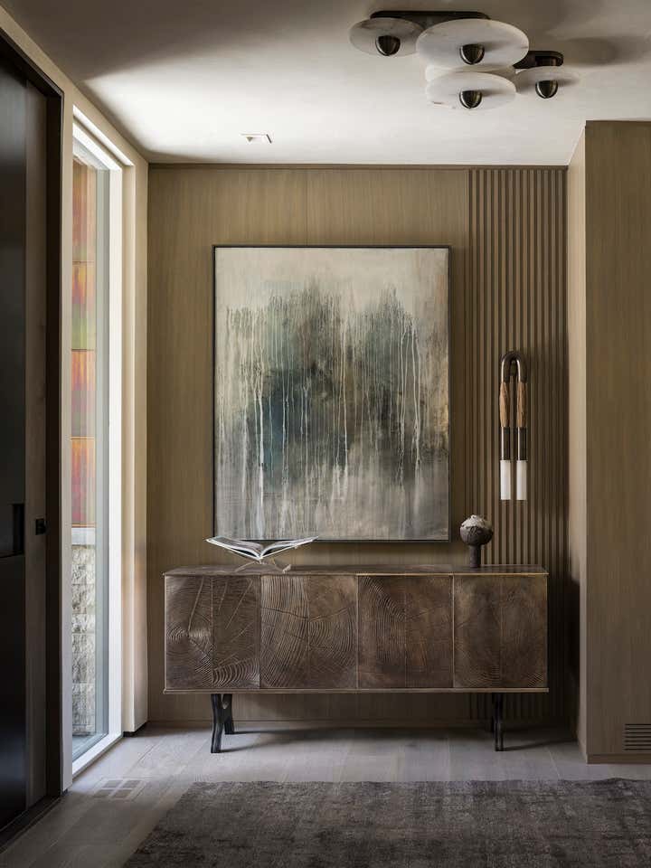Seeking an outdoor-indoor experience with such intimate mountain views, AMB Design created refined elements of white oak merged with patina'd metals, rugged limestones, and a sense of tranquility. The furnishings, rooted in earthy naturalism, whisper informality and sanctuary.