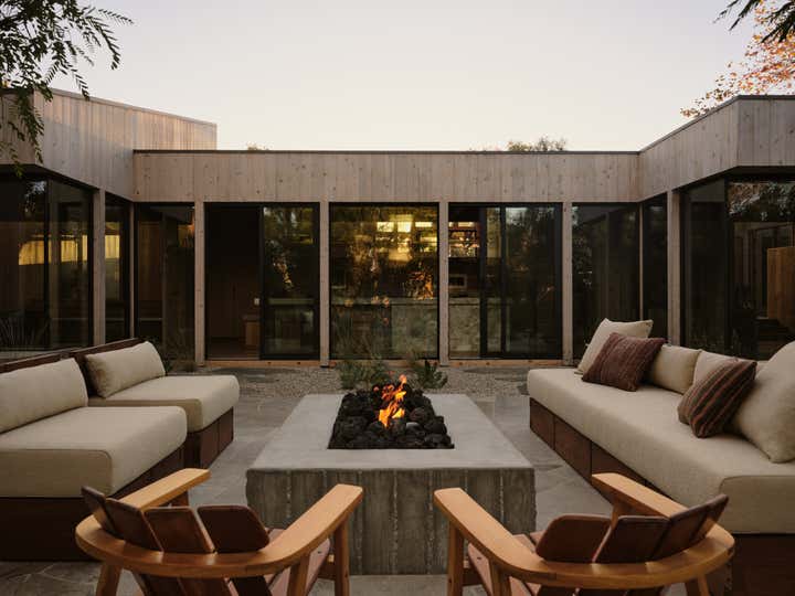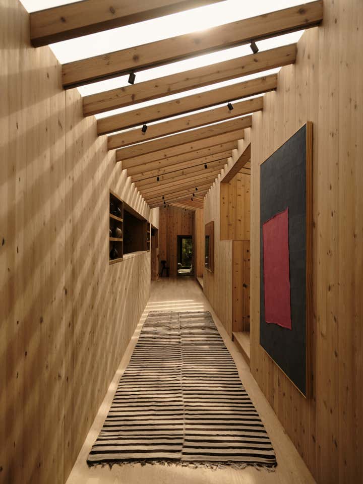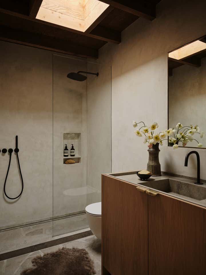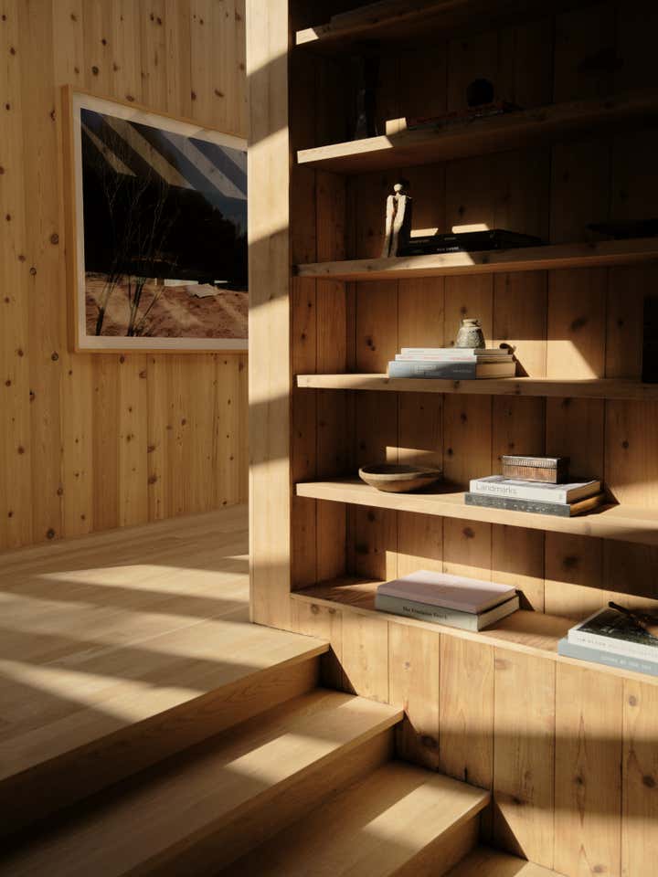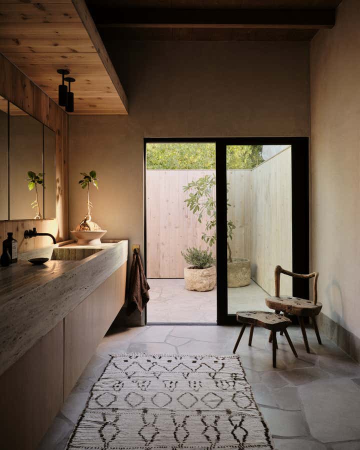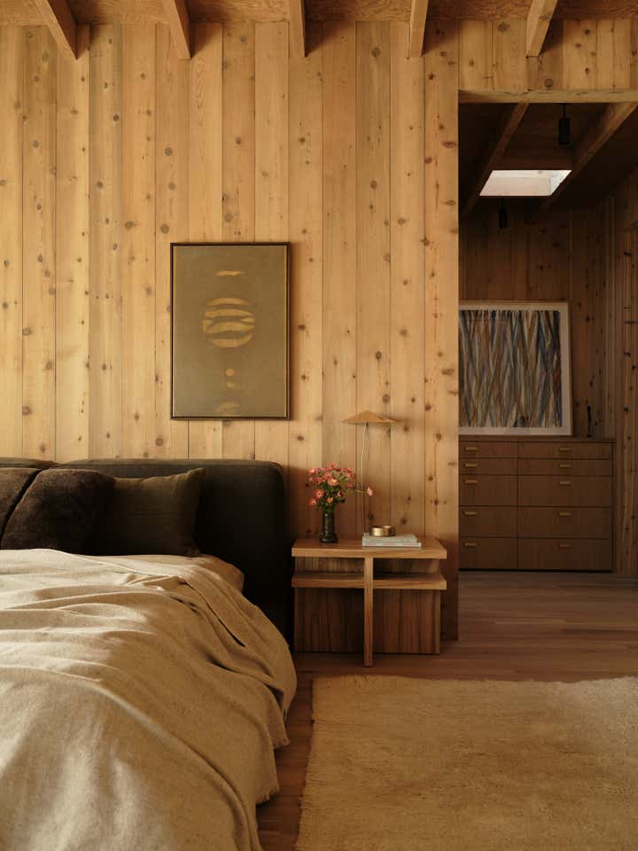 Expansive windows, skylights and passageways allow for an abundance of natural light and cross-ventilation in this sustainably minded reimagining of a post-and-beam Malibu home originally designed by architect Ronald Goldman in 1979. A collaboration between Alexander Design Build and Alexander Built Properties, the residence features custom millwork and stonework, bespoke and collectible vintage furnishings, and brass detailing for an effortlessly chic and timeless interior. A saltwater pool and drought-tolerant plantings create a tranquil outdoor oasis that seamlessly blends nature with modern luxury.