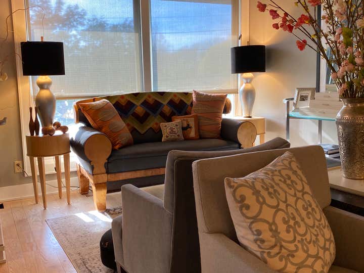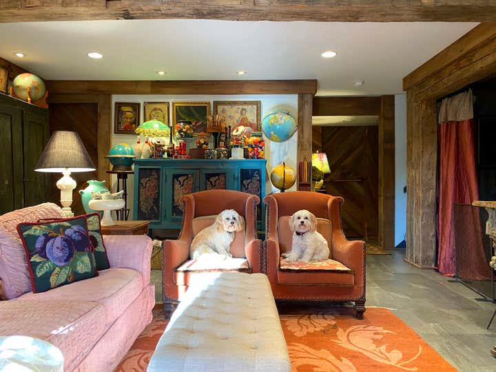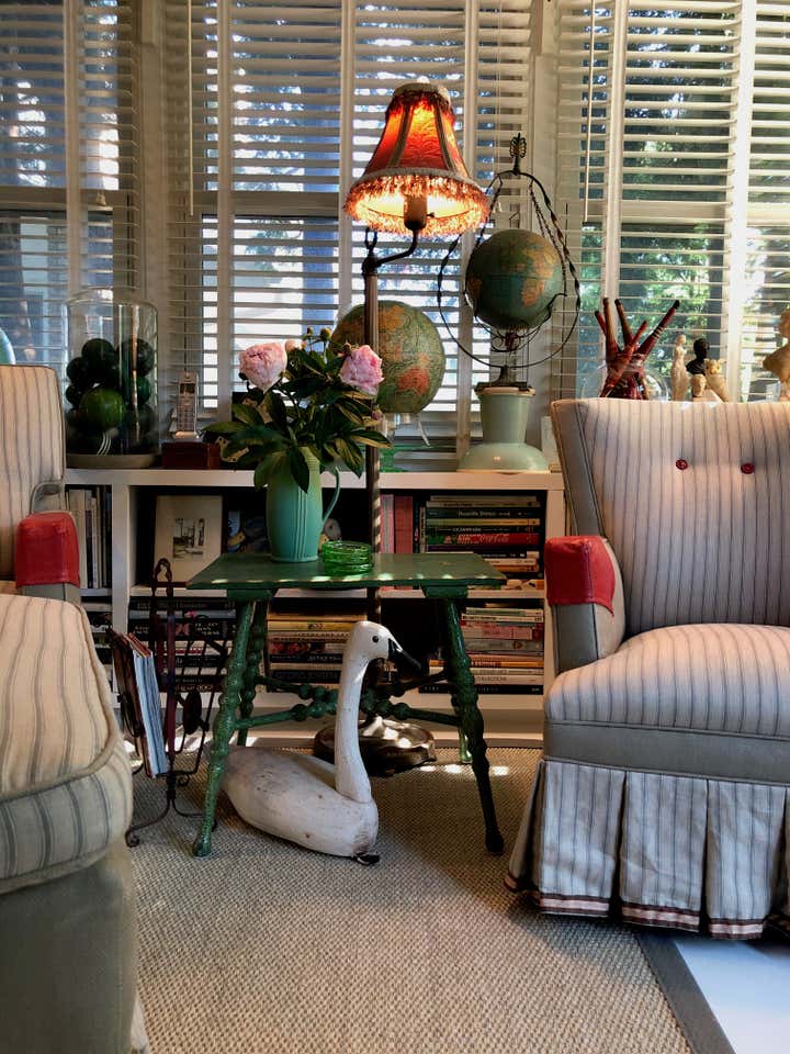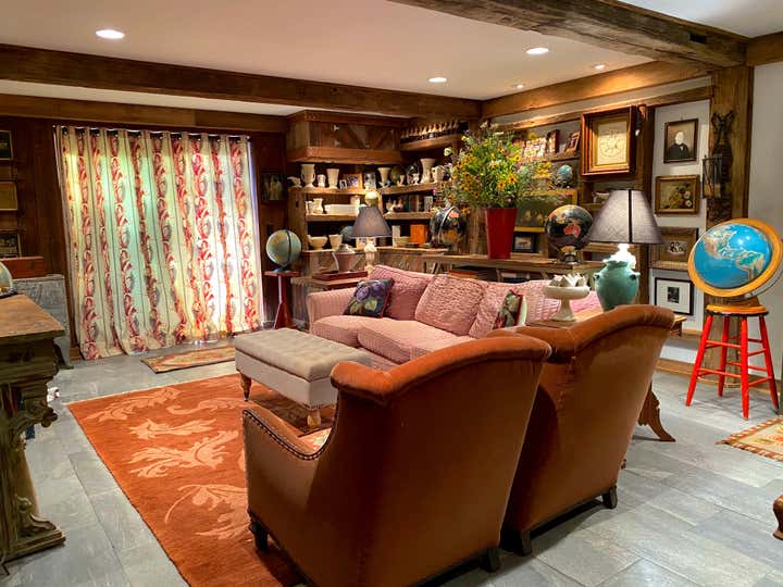 An eclectic home saturated with the patina of years of collecting combined with custom furniture from the designer's own line making a statement of comfortable elegance