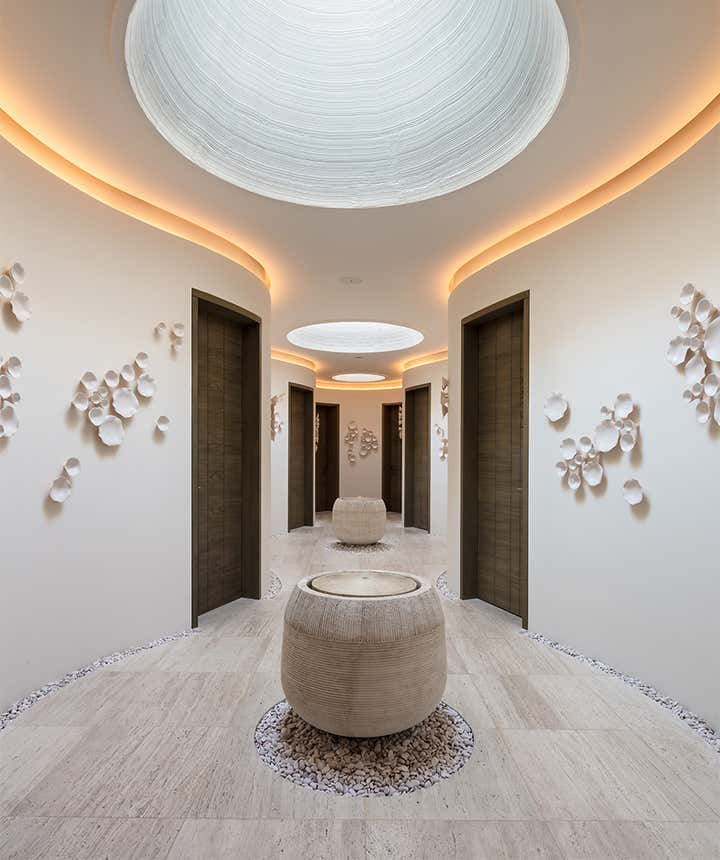 A triumph of collaboration, art, and style. Carved marble chaises warm to your preferred temperature. The curated artistry of Mexican sculptors, potters, and weavers accentuates the strong lines and smooth shapes of the architectural features. This has become a destination spa thanks to our attention to every detail. Visitors are enthralled by the array of relaxing spaces within.