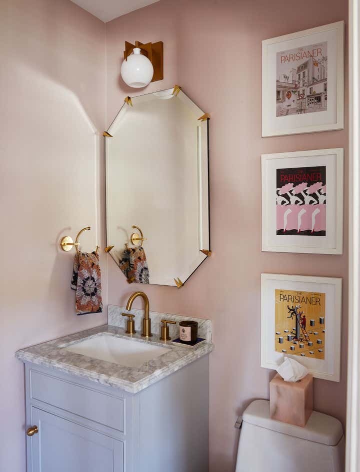 A chic and elevated dollhouse for a stylish bachelorette in Westwood. Behind window boxes, a Barbie pink front door, and a white picket fence, discover a galleried sitting room with sharp black walls, punctuated by original midcentury chrome furnishings and lighting. Shades of rose, charcoal, silver, and white in varied intensities are carried throughout.