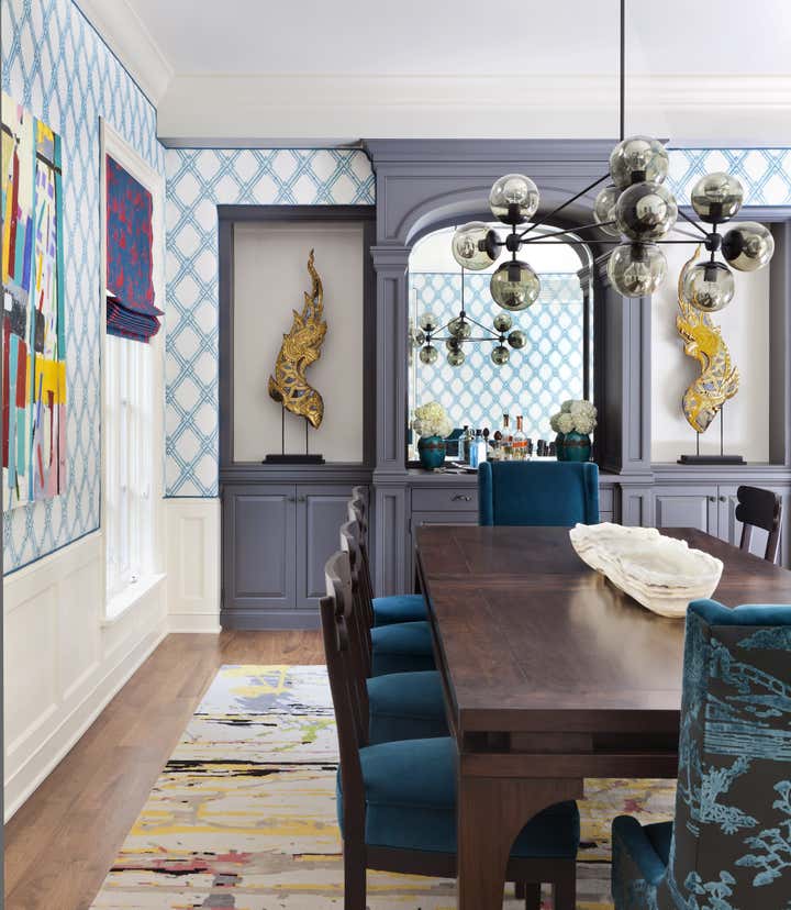 This interior renovation in Denver’s Cherry Creek is bursting with pops of color alongside sophisticated neutrals, unique art, and custom furnishings, resulting in whimsical, magical living spaces for a young family in Colorado. Our Denver interior designers enjoyed every moment of this project and the final design!