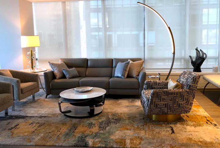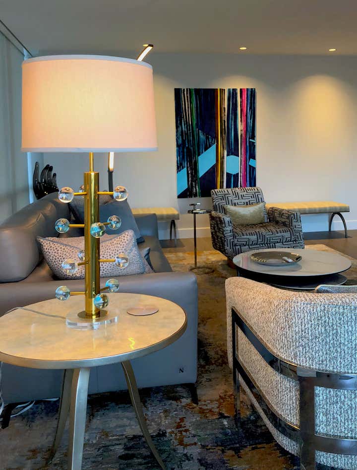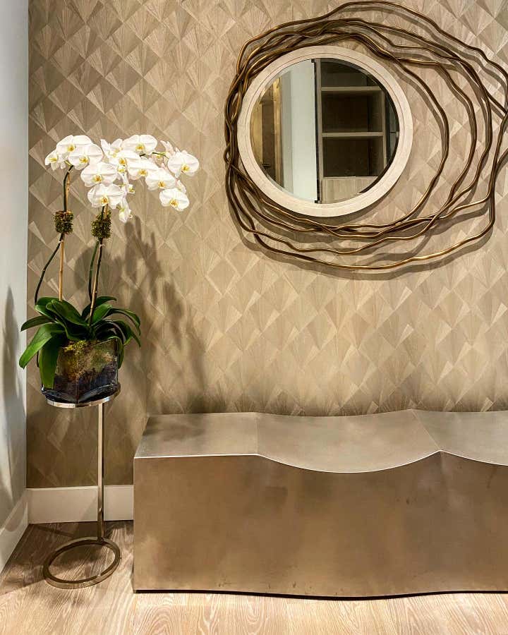 Our challenge was to integrate a new wife's personality into her husband's existing apartment. The apartment had an angular masculine feel. We need to soften the edges so she felt as if the apartment was theirs, not just his. We did this with adding some touches of bling and texture and a curvier geometry to the apartment