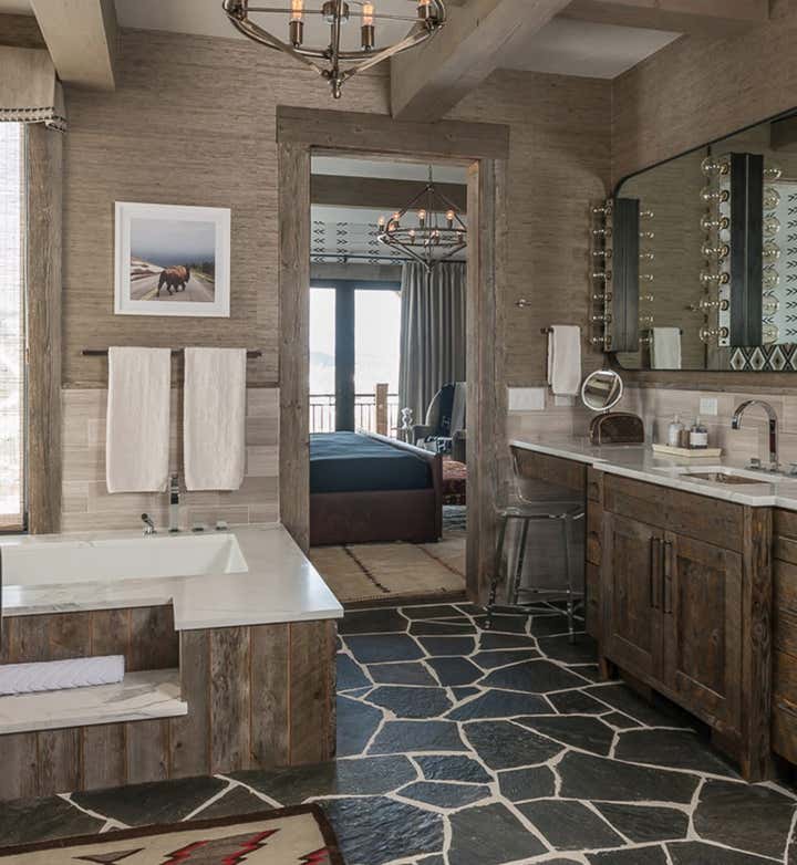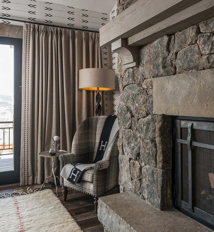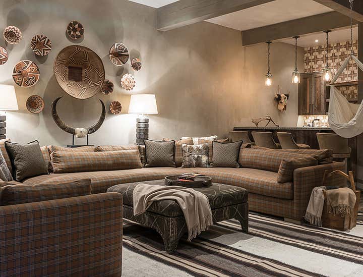 This ski chalet is located in the Yellowstone Club, Big Sky, MT. With a backdrop of neutral plaster and grey washed timbers, any accent of color and texture popped creating a place where the après ski is as fun as the skiing itself.