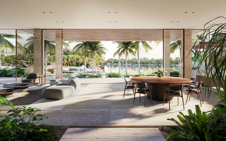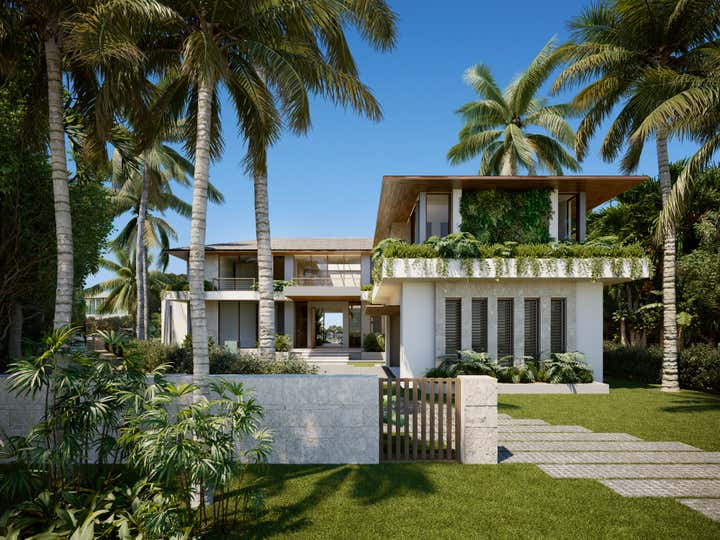 This spectacular 12,000 SF waterfront home blends contemporary Balinese-inspired design with luxury resort-style living, using natural materials, warm tones, and modern organic furnishings throughout. Nestled on tranquil Sunset Lake, the home evokes a calming energy that seamlessly integrates interior and exterior spaces.
