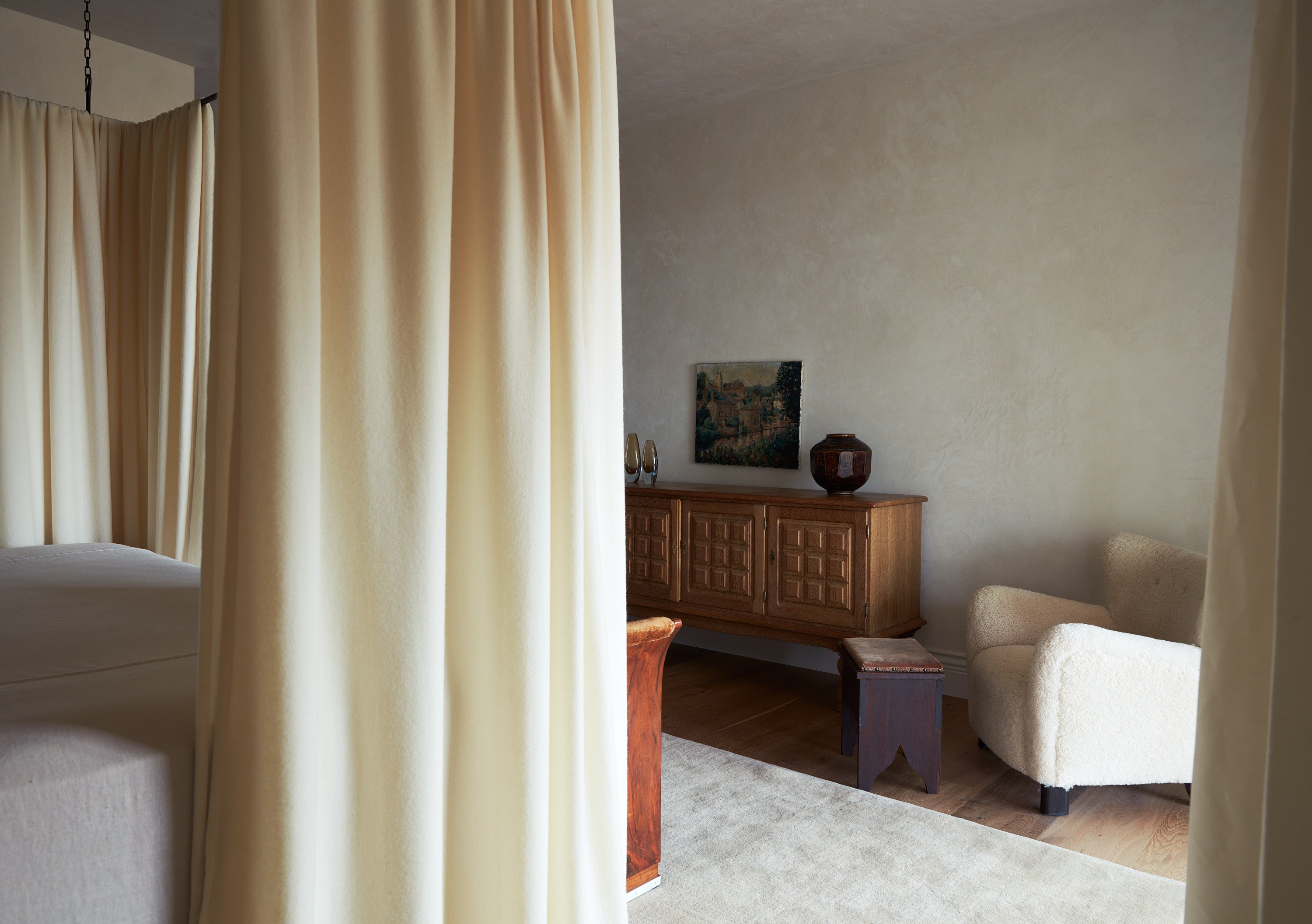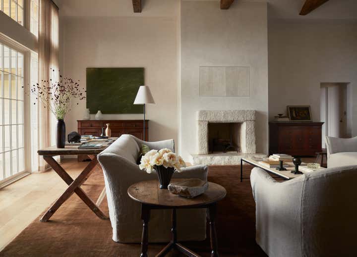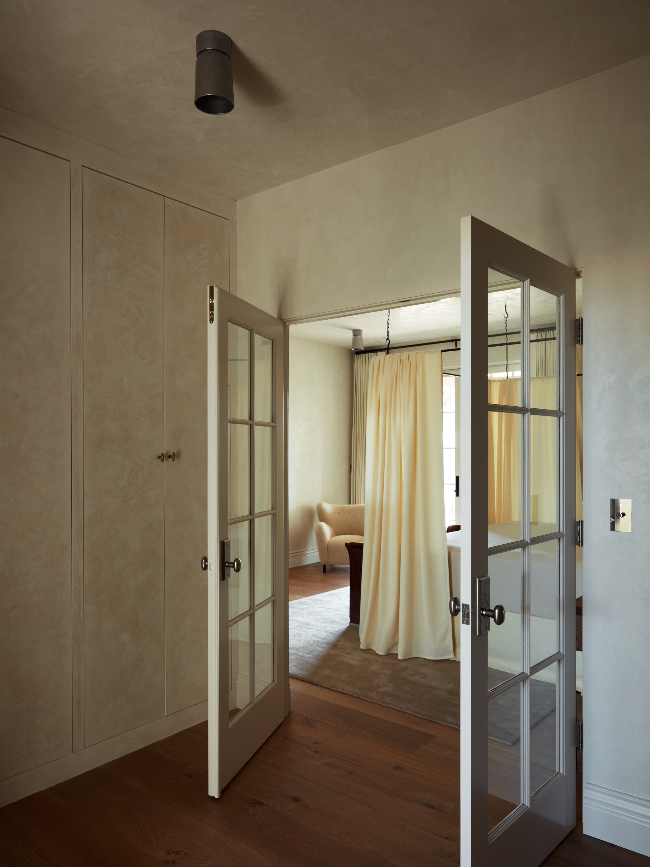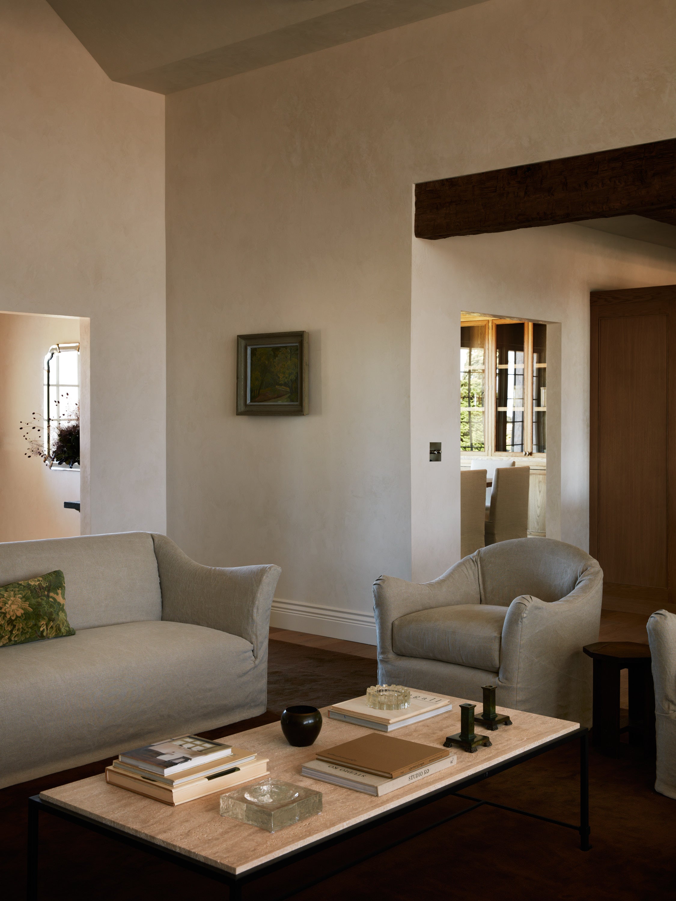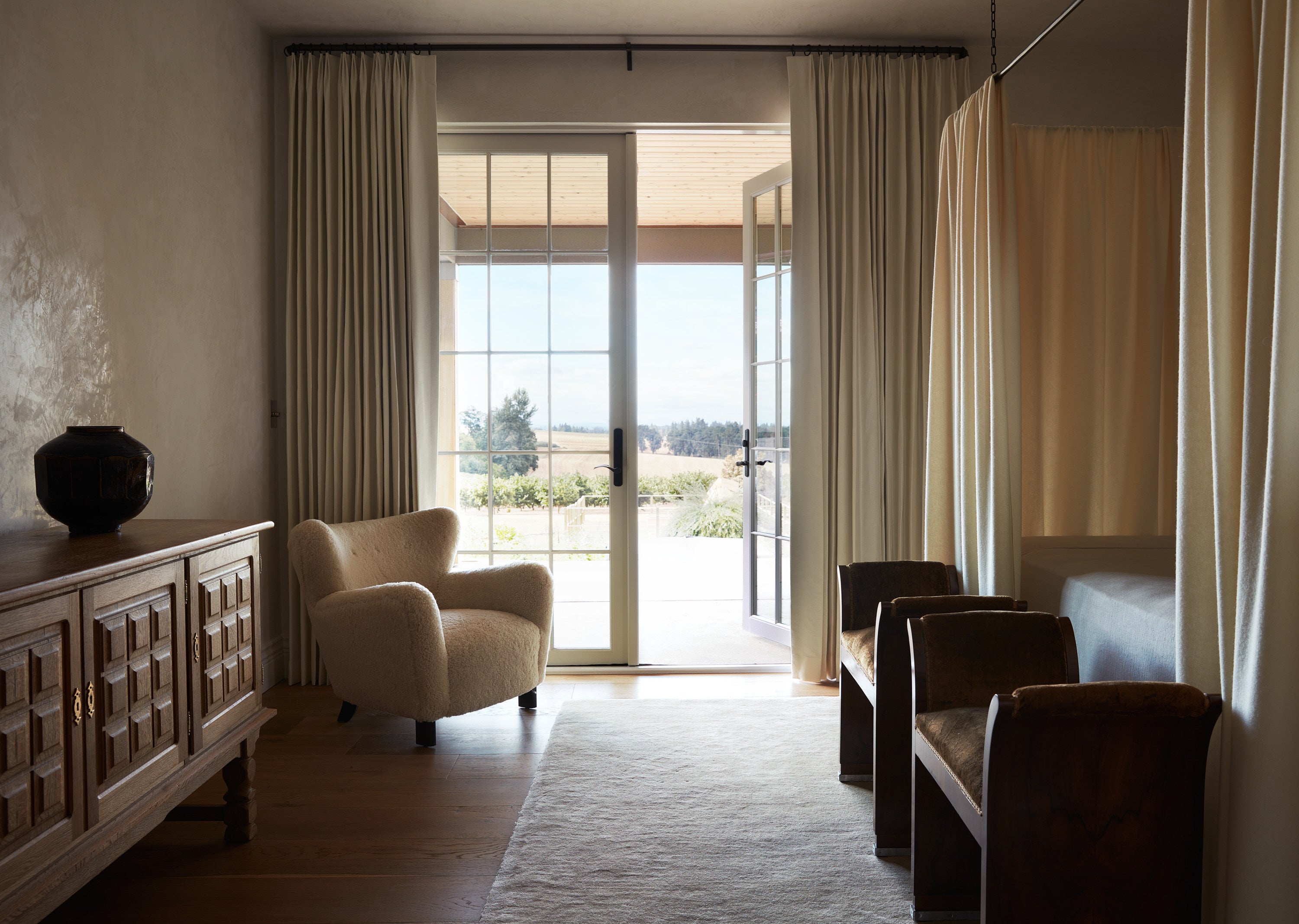 Vintage and bespoke furnishings are layered throughout, each chosen for its patina, craftsmanship, and sense of history. The design is grounded in natural materials, luminous plaster walls, and a restrained palette that balances European romance with Pacific Northwest ease. The result is a home that feels collected over time—elevated yet approachable, refined yet soulful—where every detail contributes to a sense of calm, cohesion, and lived-in elegance.