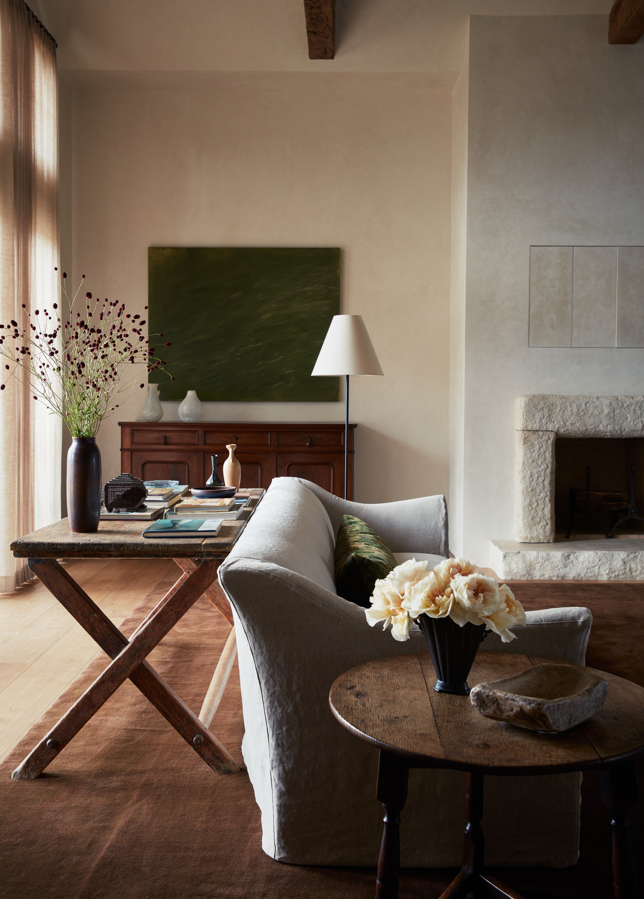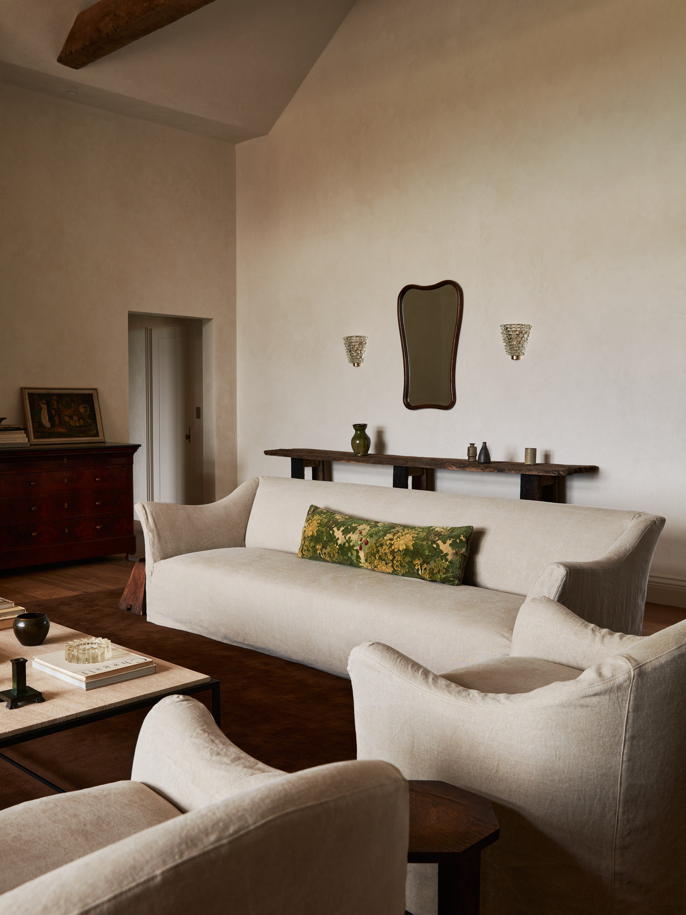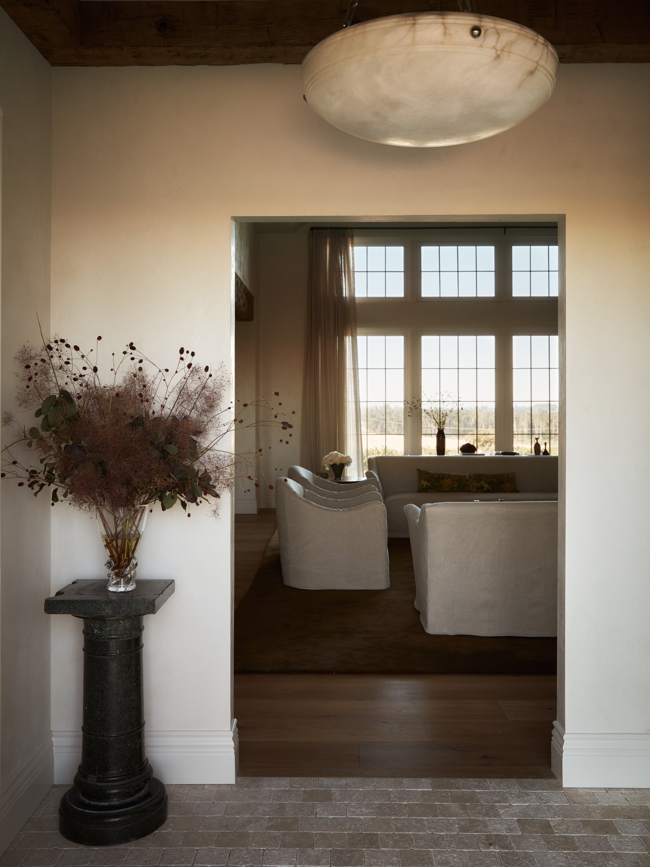 Vintage and bespoke furnishings are layered throughout, each chosen for its patina, craftsmanship, and sense of history. The design is grounded in natural materials, luminous plaster walls, and a restrained palette that balances European romance with Pacific Northwest ease. The result is a home that feels collected over time—elevated yet approachable, refined yet soulful—where every detail contributes to a sense of calm, cohesion, and lived-in elegance.