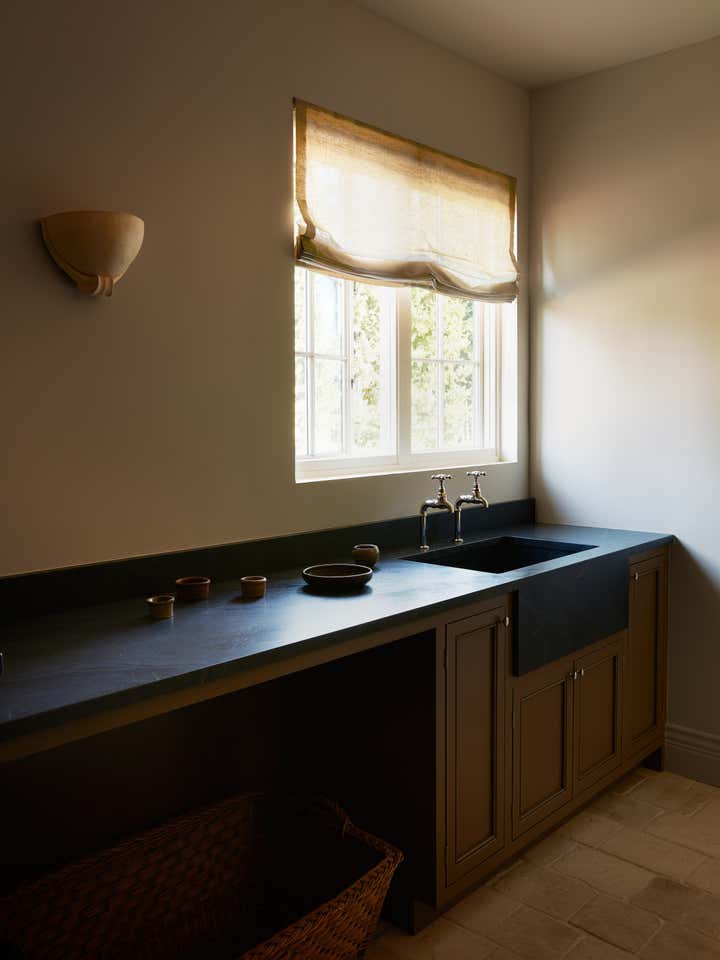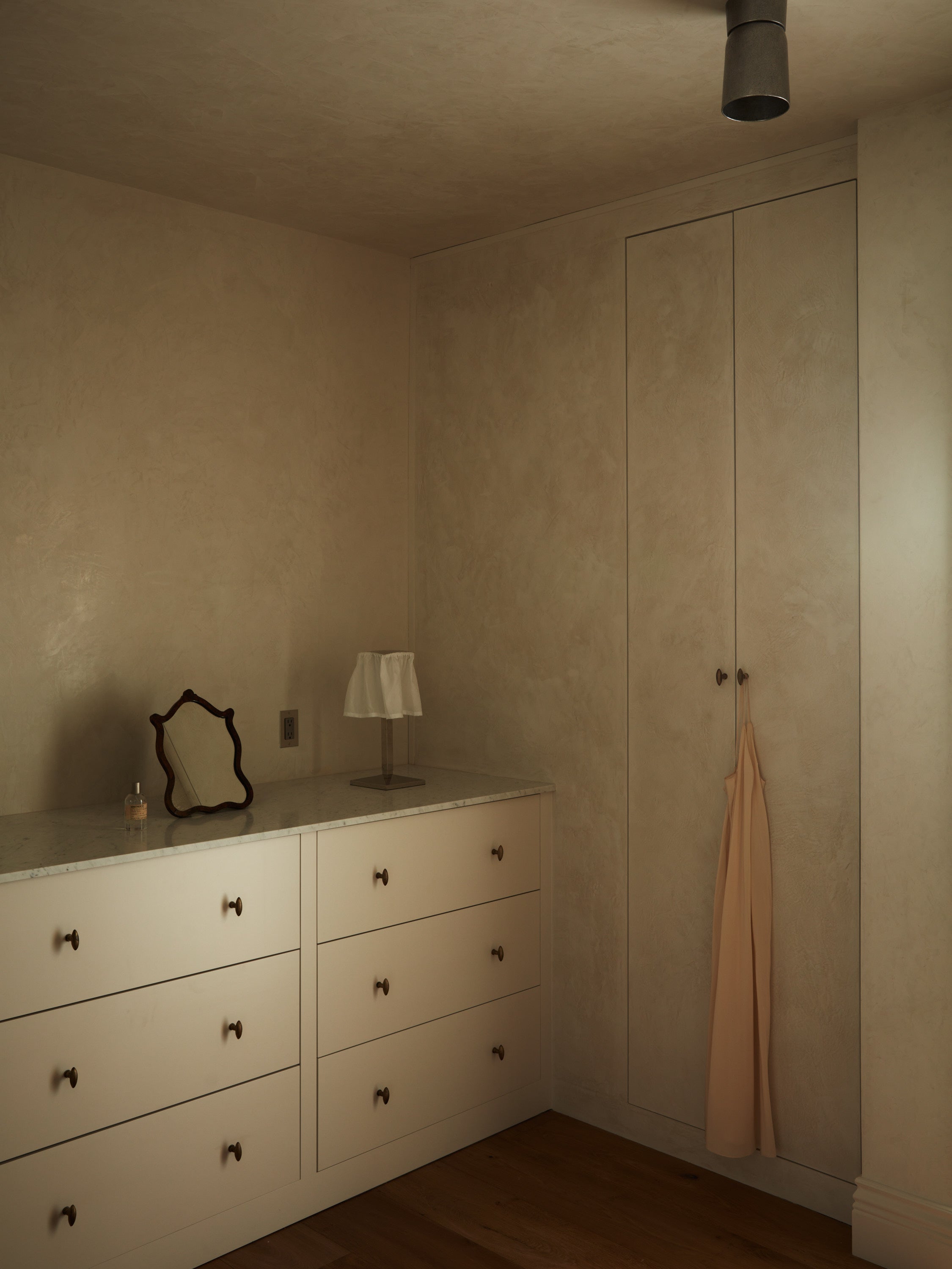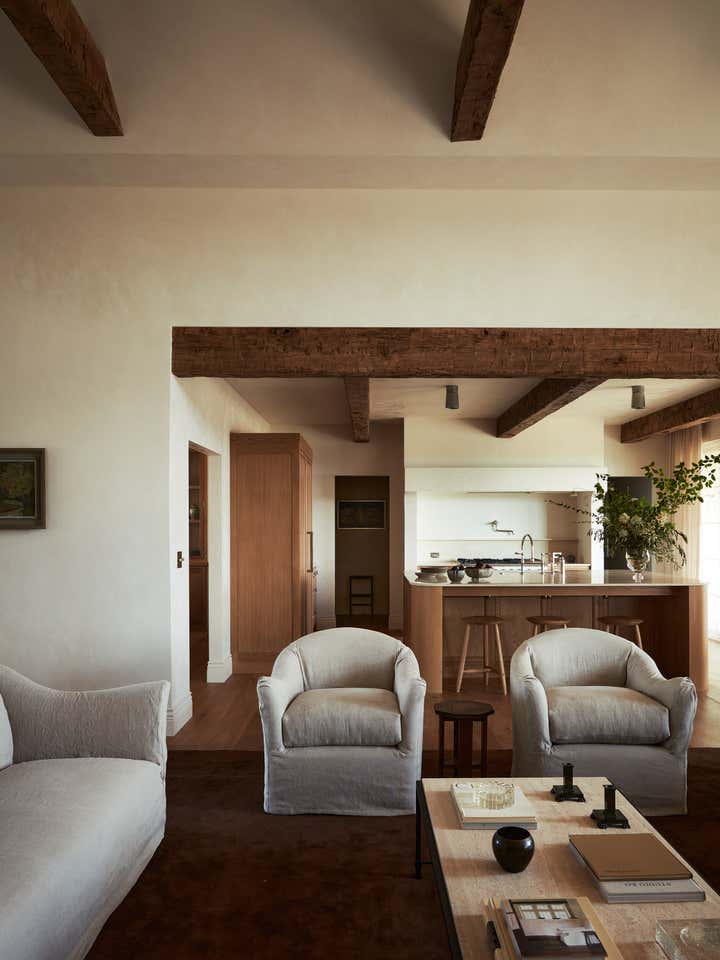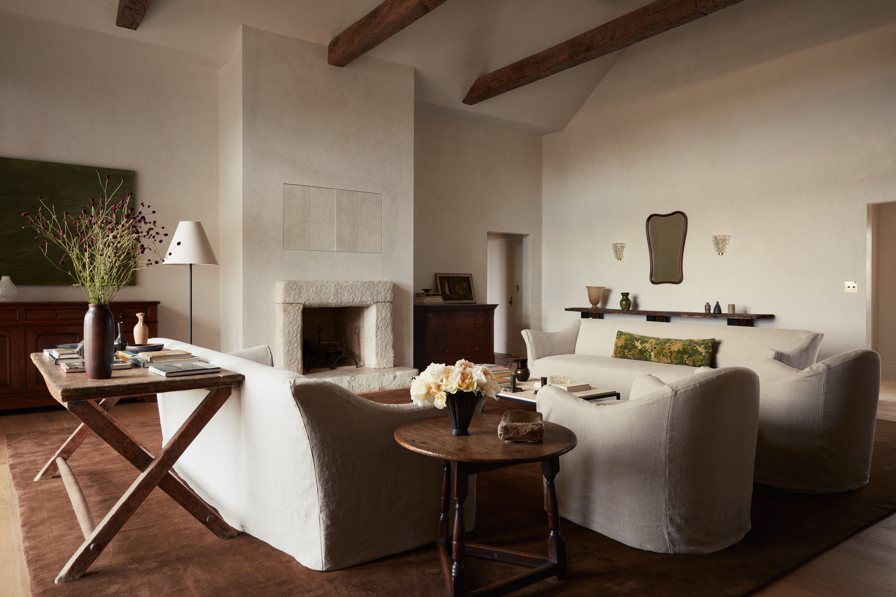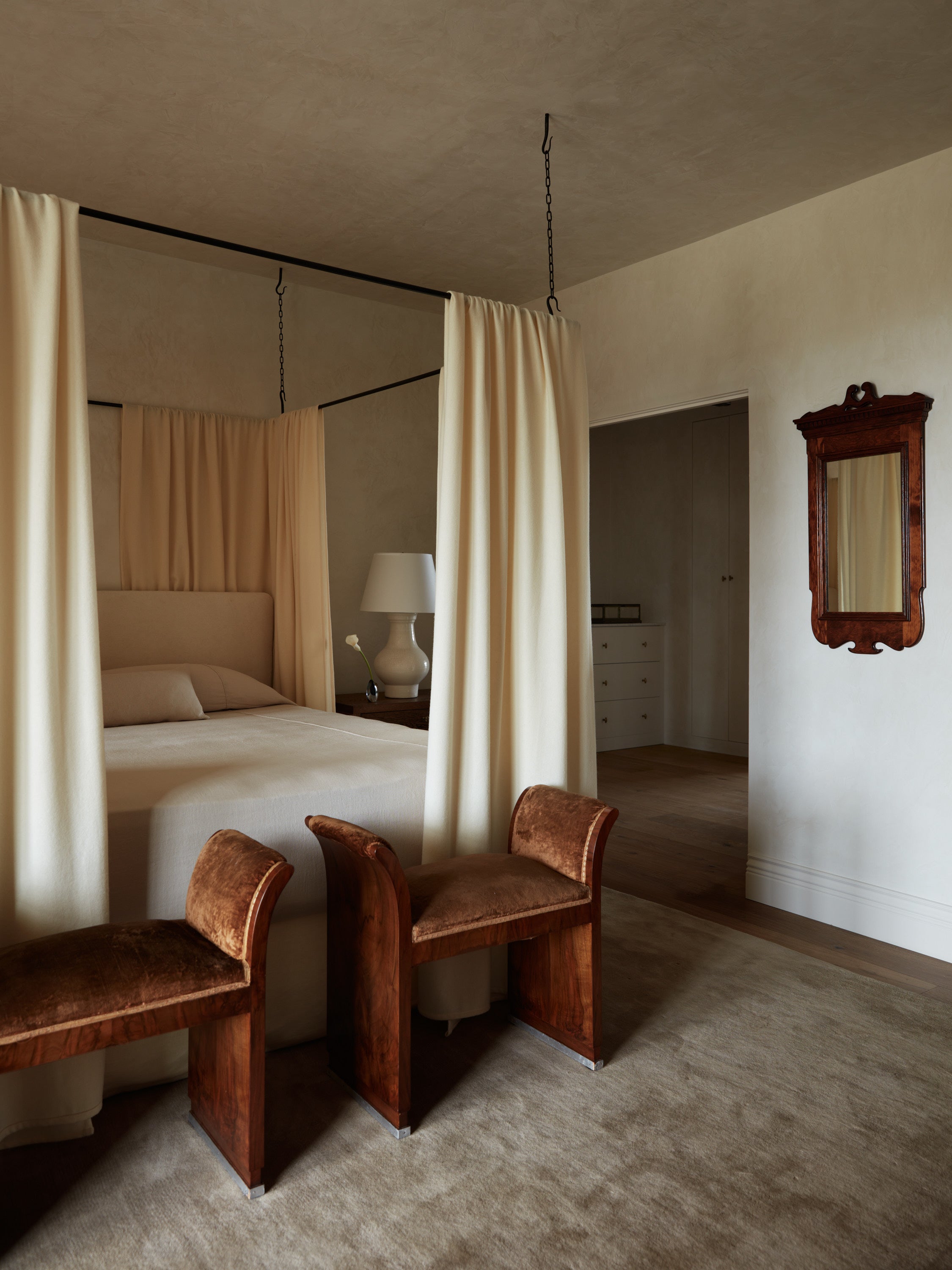 Vintage and bespoke furnishings are layered throughout, each chosen for its patina, craftsmanship, and sense of history. The design is grounded in natural materials, luminous plaster walls, and a restrained palette that balances European romance with Pacific Northwest ease. The result is a home that feels collected over time—elevated yet approachable, refined yet soulful—where every detail contributes to a sense of calm, cohesion, and lived-in elegance.