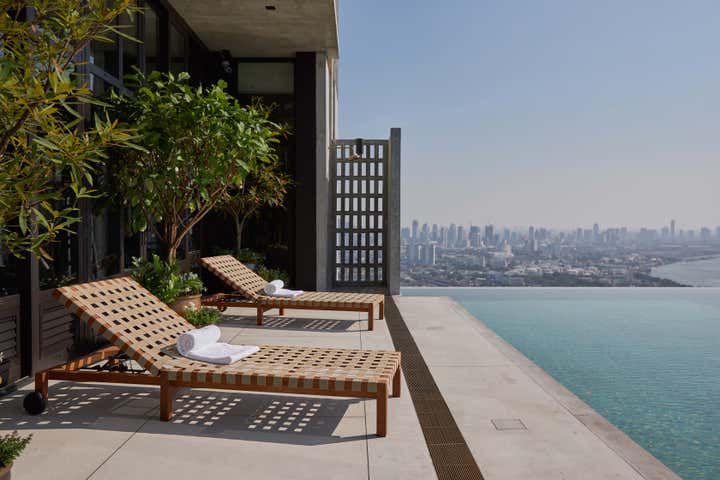 Pernille Lind Studio was appointed to work on the interior design, styling and curation of all public areas for Windshell, a luxury residential development. The public areas are designed to be grounded in their locality whilst having a global outlook. Vintage pieces have been sourced from all over the world, each carrying its own story and adding character to a rich tapestry of furnishings. Local craftsman and manufactures were commissioned to create custom furniture and spatial dividers, using local materials such as bamboo and teak. Thai and further Asian touches were added in the styling of collectable ceramics and objects. The warm, subtle fabric palette is carefully selected to soften the spaces, and Zeigler style vintage rugs offer a sophisticated contrast to the concrete architecture. A varied arrangement of zones on the ground floor created to achieve diversity and flexibility. Residents can socialise both indoors and outdoors, enjoying communal lawns and covered exterior niches.