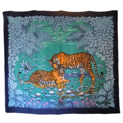 Rare and Gorgeous Authentic Hermès Change Tray Can be used as ashtray Print: "Carnets d'Equateur" Designed by Robert Dallet Theme: Africa, wild animals, jungle, leopard, parrots ...