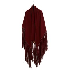 Hermès Maxi Triangle shawl with fringe in dark brown cashmere and long knotted fringes in matching leather. Approximately 200 cm wide x 100 cm high (excluding the 45 cm fringe). The ...