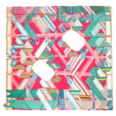 Hermes 'Le Sacre du Printemps' Spring Pink & White Silk Scarf, 1986