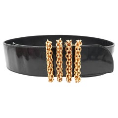 Chanel Vintage Multi Strand Black Lambskin Leather and Gold Chain Belt, 1984