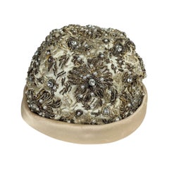 This truly darling 1950's stone coloured linen hat, embellished with silver rhinestones, is the sweetest finishing touch to your outfit. The soft rounded and moulded crown, showcases...