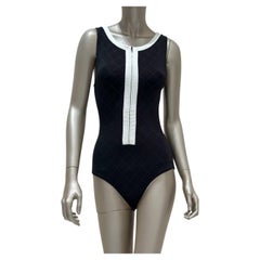 From Gucci’s Spring/Summer 2001 collection by Tom Ford, this new-with-tags black one-piece swimsuit features a sleek silhouette with a deep V neckline, square branded accents, sewn i...