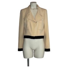1998 3 pcs Chanel by Karl Lagerfeld Black Crepe Bustier Corset and Creme bustle skirt with detachable sleeves and short sash that you can style it as a strap or scarf. Perfect for We...