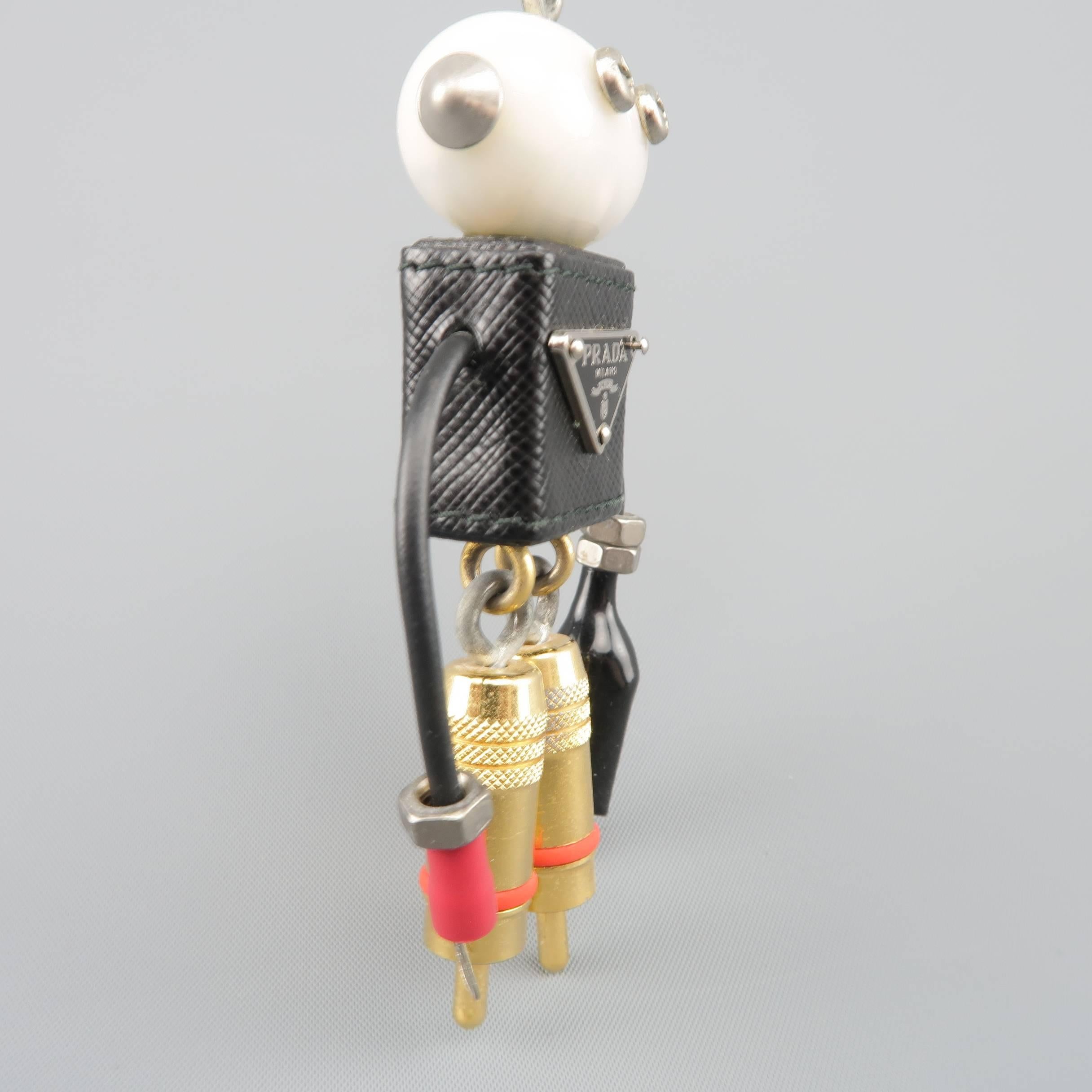 PRADA Mixed Metals Enamel Plaque Robot Wallace Keychain