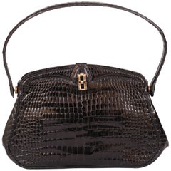 BOTTEGA VENETA dark brown 2017 LAUREN 1980 CROCODILE Clutch Bag