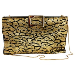 PRADA gold silver 2004 SKIPPER LIZARD TRIM BROCADE Bag