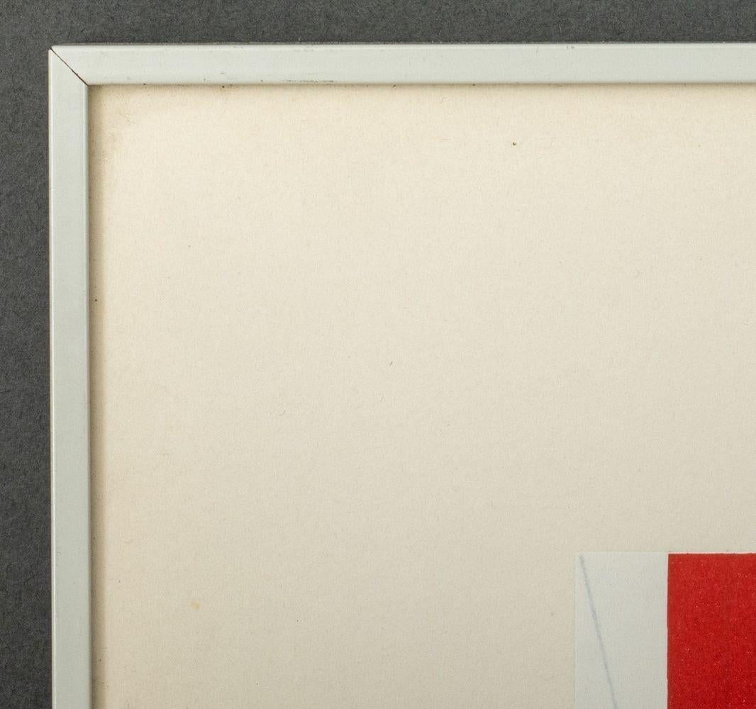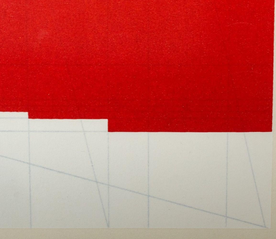 Gianfranco Pardi (italien, 1933-2012), " Architettura " [Architecture], lithographie en couleurs, 1974, représentant une composition géométrique en rouge et blanc, signée au crayon, datée et numérotée édition " 47/100 " en bas au centre, cadre en métal. Image : 12" H x 8.25" L ; cadre : 16.75" H x 13.25" L. Provenance : D'une maison de ville de l'Upper East Side.