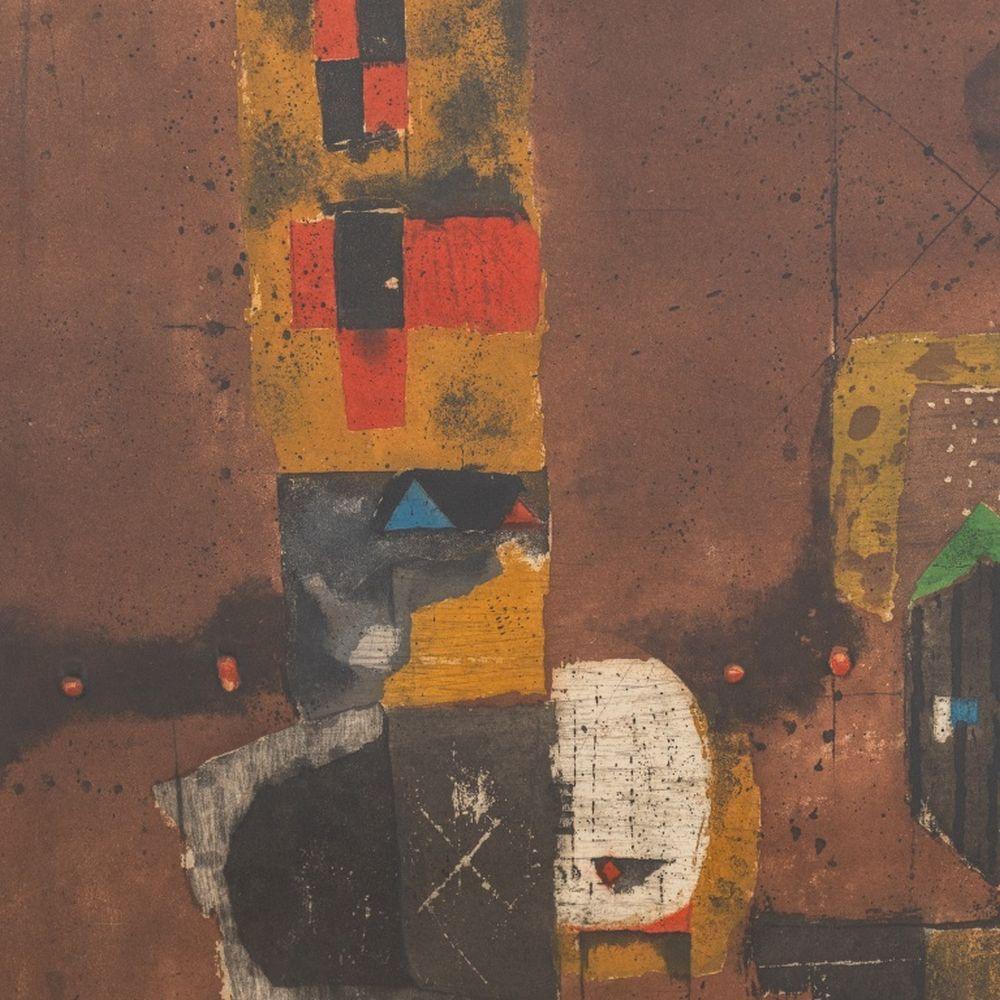 Cette œuvre d'art "Composition abstraite II." c.1970 est une gravure originale en couleur et aquatinte sur papier Arches de l'artiste polonais Johnny Friedlaender, 1912-1992. Elle es...