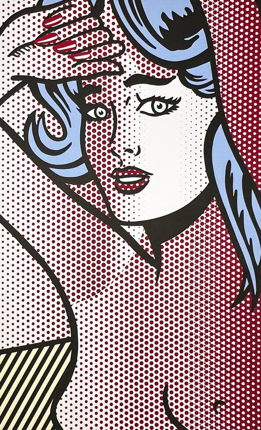 Travaillant à l'apogée du mouvement expressionniste abstrait dans les années 1950, Lichtenstein a délibérément évité le type de peinture qui était tenu en haute estime par le monde de l'art et a plutôt choisi d'explorer le monde visuel de la publicité imprimée et des bandes dessinées. Ce geste de recontextualisation d'une image de bas étage en l'important dans un contexte artistique deviendra une marque de fabrique du style artistique de Lichtenstein, ainsi qu'un véhicule de sa critique du concept de bon goût. Sa peinture de 1963 Whaam ! confronte le spectateur à une scène d'impact tirée d'un numéro de DC Comics datant de 1962 All American Men of War. Isolée de son contexte plus large, cette image combine le lettrage ludique et l'illustration aux couleurs vives de la bande dessinée originale avec un message plus sombre sur les conflits militaires au plus fort de la guerre froide. Crying Girl de la même année présente un autre motif de Lichtenstein - une femme en détresse, dépeinte avec un mélange de drame et d'humour pince-sans-rire. Son travail s'est fait connaître en créant une peinture murale inspirée de la bande dessinée pour le pavillon de l'État de New York de l'exposition universelle de 1964, il a ensuite été représenté par le légendaire galeriste new-yorkais Leo Castelli pendant 30 ans.