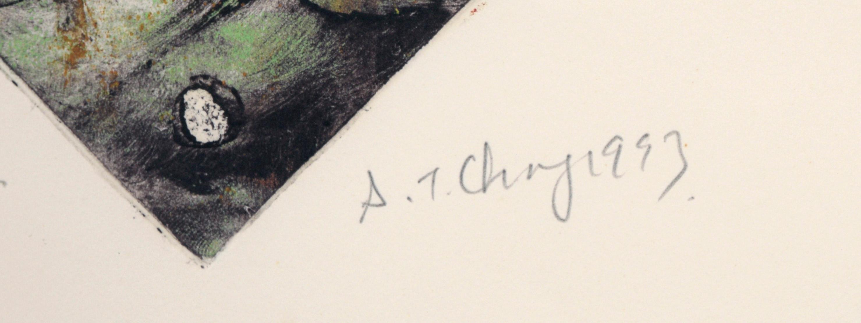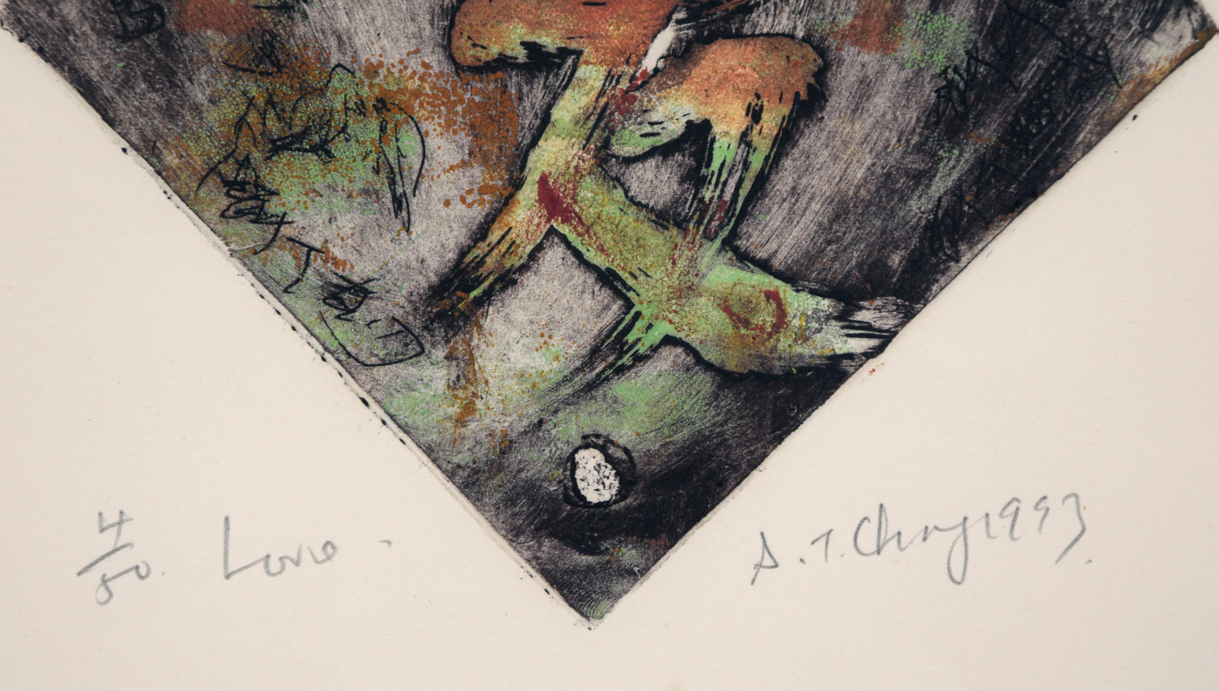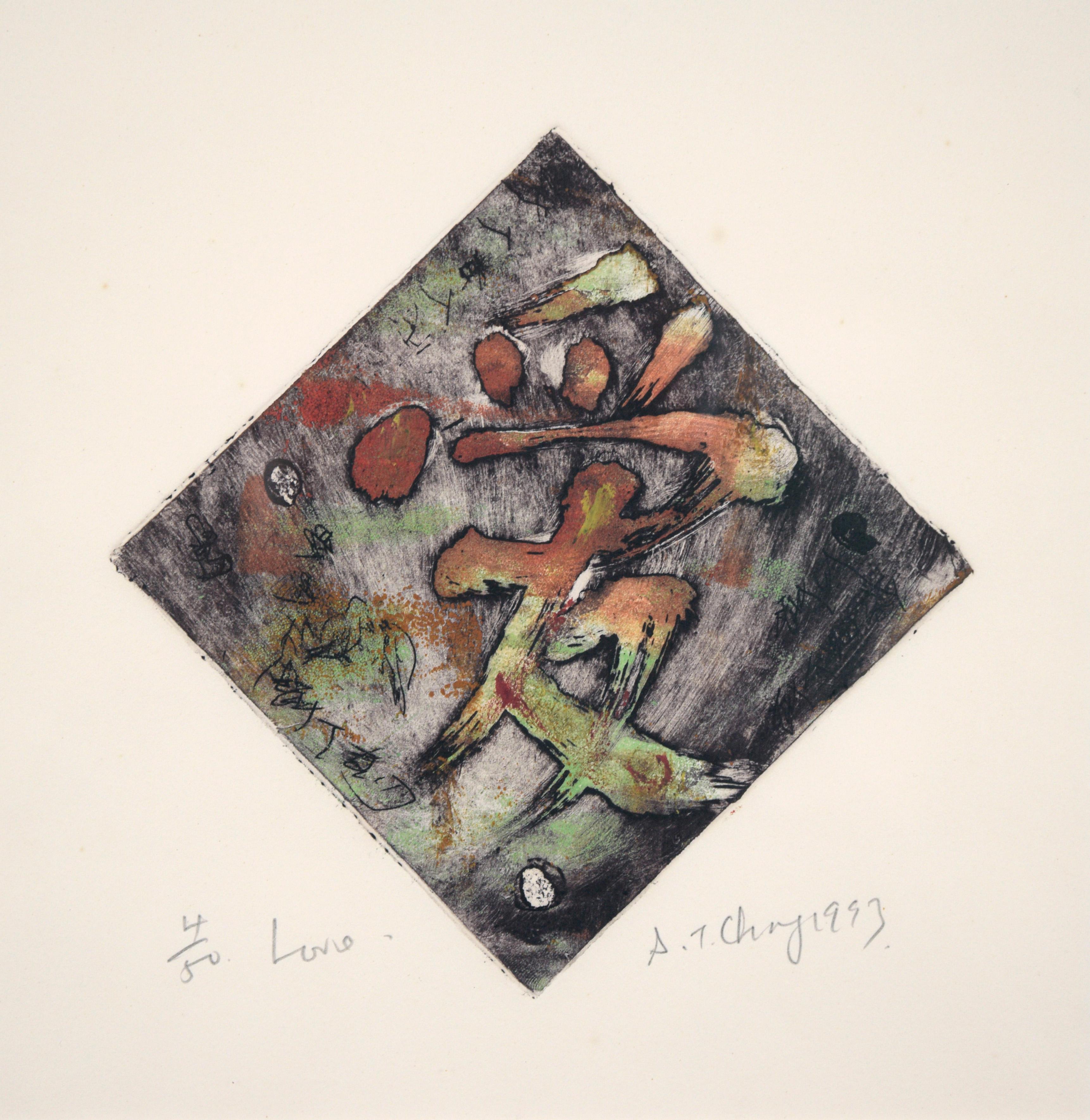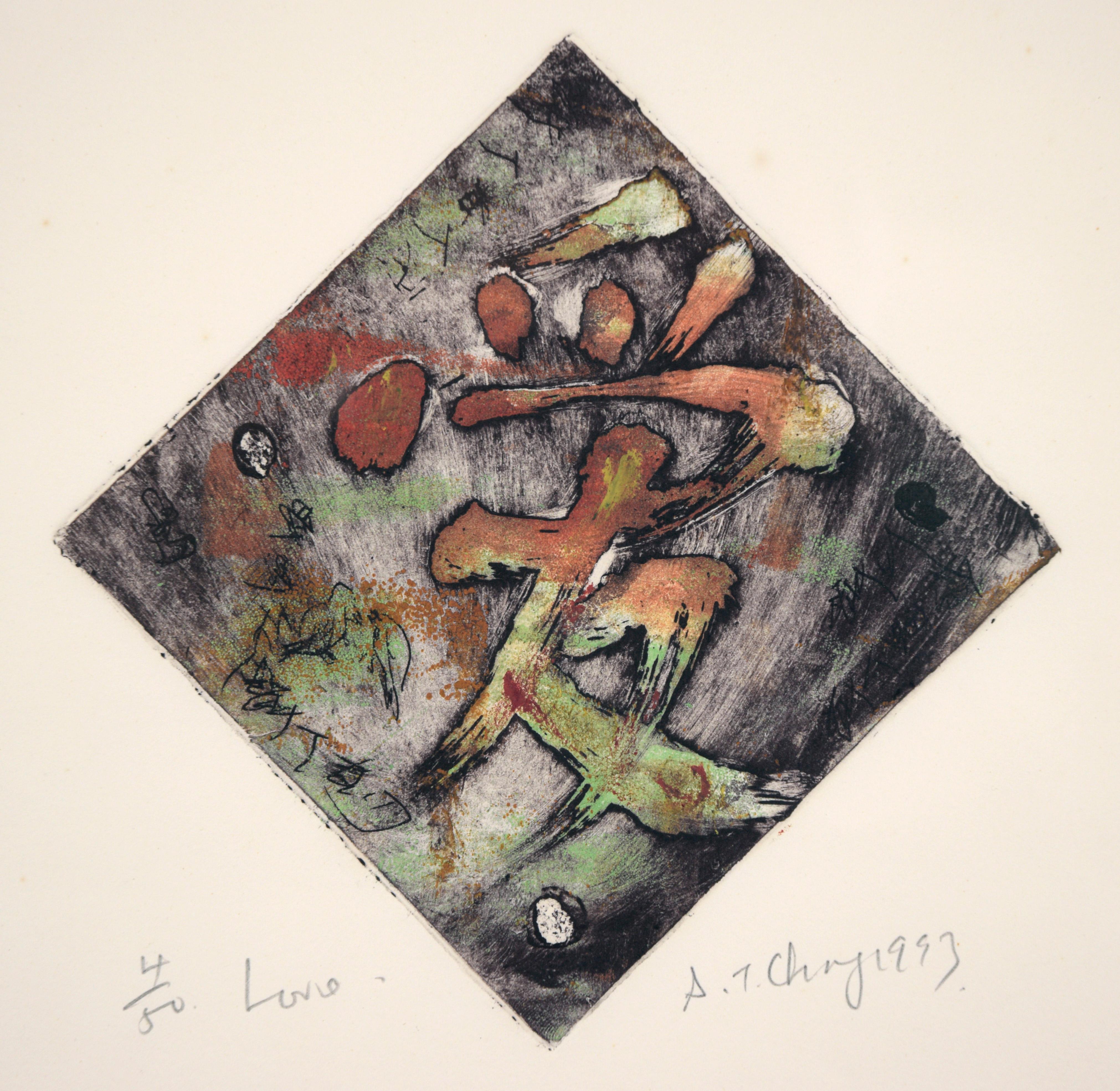 "Love" Gravure à la pointe sèche vintage de San Francisco par S.T. Chang