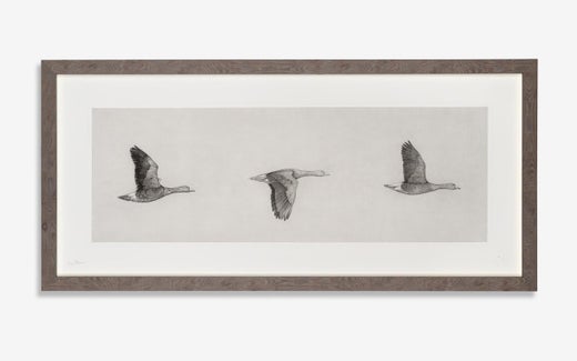 Guy Allen est un graveur expérimental, un dessinateur exceptionnel et un jeune artiste britannique très talentueux. Travaillant d'arrache-pied entre ses studios de Londres et de Norfolk, l'approche expérimentale de la gravure qui caractérise Guy présente un mélange passionnant de couleurs, de feuilles d'or et un point de vue original et contemporain sur l'art traditionnel de l'eau-forte.Étudiant à Studio Martin de 2008 à 2011, Guy a découvert la presse à imprimer lors d'un voyage à l'École Nationale Supérieure Des Beaux-Arts de Paris. Trouver une forme d'art qui se prêtait si parfaitement à ses aspirations artistiques fut une révélation. Il n'a jamais regardé en arrière. Ayant grandi dans le Norfolk, la campagne et son amour des animaux ont eu un impact durable sur le travail de Guy. Revenant régulièrement à ses racines du Norfolk pour rassembler ses pensées et son inspiration, ses sujets sont directement tirés de la campagne du Norfolk et sont tous des espèces indigènes de la terre qu'il connaît depuis l'enfance. Cette inspiration et cette volonté de créer sont encore renforcées par l'amour de Guy pour la presse à imprimer. Avec un style distinctif, une capacité de frappe et un engagement total, Guy a maîtrisé ses techniques d'impression. Explorant sans cesse les possibilités et les opportunités infinies qu'offre le médium, il insuffle une nouvelle vie aux techniques et aux sujets traditionnels. Guy a également un grand intérêt philanthropique et soutient chaque année de nombreuses associations caritatives dans le domaine des arts, notamment Art For Youth, EACH, Keeping A Breast, Art For Cure et Well Child.