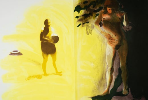 Dans ses œuvres en Mylar épinglé et en résine coulée, Fischl crée des images qui sont à la fois frappantes par leurs tons saturés et imprégnées de la tension subtile des figures qui se tordent, s'étirent et se poussent au-delà des limites du plan de l'image. L'artiste a réimaginé la technique qu'il utilisait pour créer des collages en glassine à la fin des années 70 et au début des années 80.