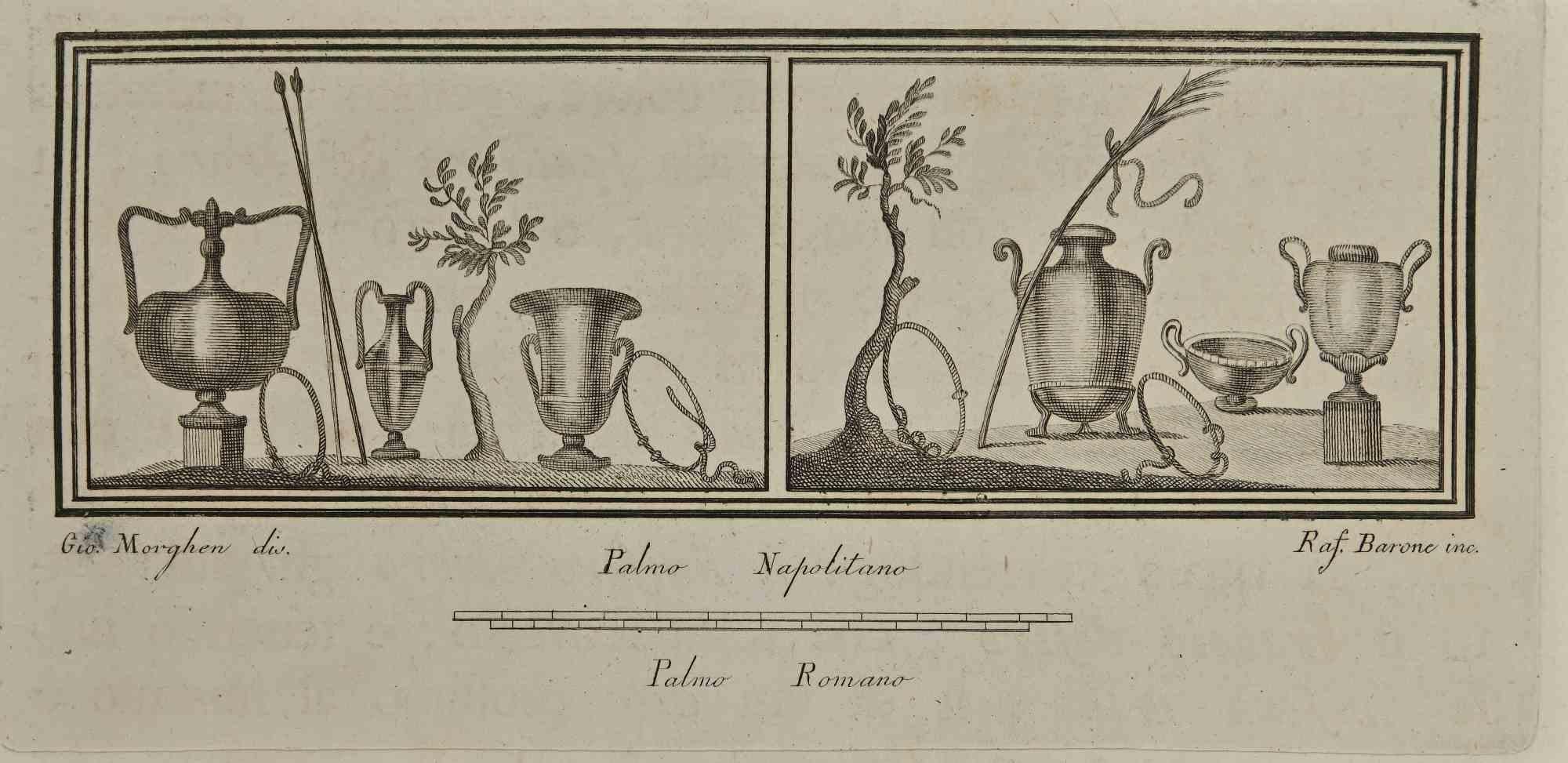 Carlo Oratij - Ancienne gravure romaine Fresco Herculaneum de Carlo Oratij - 18ème siècle