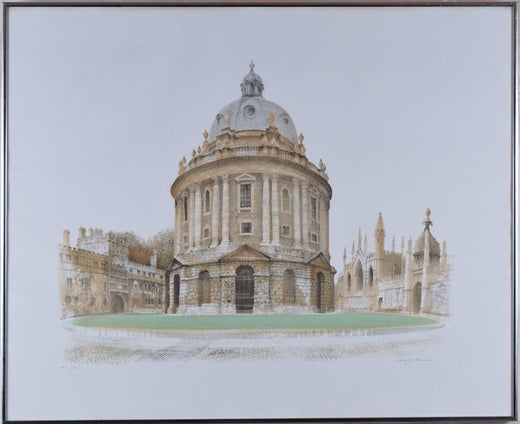 David GentlemanLithographie du Wolfson College d'Oxford par David Gentleman1976