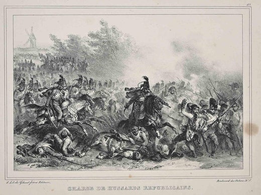 Denis Auguste Marie Raffet était un illustrateur et lithographe français. Élève de Nicolas Toussaint Charlet, il est un peintre rétrospectif de l'Empire. Très jeune, il a été apprenti chez un tourneur sur bois, mais il a commencé à étudier l'art en suivant des cours du soir. À l'âge de 18 ans, il entre dans l'atelier de Cabanel, où il applique son talent à la décoration de la Chine et où il rencontre Rudor dont il reçoit l'enseignement de la lithographie, dans la pratique de laquelle il va s'illustrer. Il entre ensuite à l'École nationale supérieure des beaux-arts, mais revient à la lithographie en 1830 lorsqu'il réalise sur pierre ses célèbres dessins de Lützen, Waterloo, Le bal, La revue et Les adieux de la garnison, grâce auxquels sa réputation est immédiatement établie. Les principales œuvres de Raffet sont ses lithographies des campagnes napoléoniennes, de l'Égypte à Waterloo, des dessins vigoureux inspirés par un ardent enthousiasme patriotique. Dans cette entreprise, il est contemporain d'autres artistes-lithographes français de Napoléon et de l'armée française, dont Joseph Louis Hippolyte Bellangé, Émile Jean-Horace Vernet et Nicolas Toussaint Charlet. En tant qu'illustrateur, son activité est prodigieuse. La liste des ouvrages illustrés par son crayon s'élève à environ 45, parmi lesquels les poèmes de Béranger, L'Histoire de la Révolution française de Louis Adolphe Thiers, l'Histoire de Napoléon de Jacques Marquet De Norvins, le roman de Walter Scott d'Auguste Jean-Baptiste Defauconpret, l'œuvre de Plutarque en français et les chansons de Frédéric Bérat. Il se rend à Rome en 1849 et assiste au siège de Rome, dont il fait le sujet de quelques lithographies, et suit la campagne d'Italie de 1859, dont il laisse un témoignage dans ses Episodes de la Campagne d'Italie en 1859. Ses portraits au crayon et à l'aquarelle sont pleins de caractère. Il est décédé à Gênes en 1860. En 1893, un monument d'Emmanuel Frémiet a été inauguré dans le Jardin de l'Infante au Louvre, à Paris. La statue a été enlevée et fondue pendant l'occupation nazie de Paris.