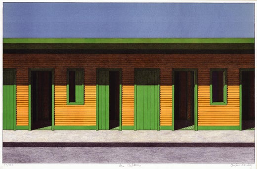 Emilio Sanchez est né à Camagüey, Cuba, en 1921. Il a commencé sa formation artistique à l'Art Students League en 1944 lorsqu'il s'est installé à New York où il a vécu jusqu'à sa mort en 1999. Cependant, c'est à Cuba qu'il se passionne pour les jeux d'ombre et de lumière sur les formes colorées qui deviennent une caractéristique dominante de ses œuvres. Ses premières œuvres des années 1950 sont stylisées et figuratives et représentent des thèmes tels que des portraits d'amis et de modèles, des vues de New York et des paysages tropicaux. Dans les années 1960, ses œuvres sont devenues nettement plus abstraites, tout en conservant un sens aigu du naturalisme. C'est au cours de cette décennie que son travail a mûri pour devenir une vision individuelle et qu'il a commencé à développer ses célèbres peintures de maisons et de thèmes architecturaux. Ces œuvres architecturales se distinguent par leurs formes simplifiées où tous les détails superflus sont éliminés. Réduites à leur essence, ces structures acquièrent une signification universelle. Ici, il a capturé l'effet de la lumière sur la couleur pour la rendre vibrante. Bien que ses bâtiments soient souvent dépourvus d'habitants visibles, ils ont une forte présence vivante. Au cours des années 1970 et 1980, il a continué à explorer des thèmes architecturaux en voyageant dans des pays du pourtour méditerranéen. Au Maroc, par exemple, il a été impressionné par les bâtiments vernaculaires d'un blanc immaculé. Il a également réalisé des vues géométriques épurées de gratte-ciel new-yorkais. Ces œuvres architecturales se rapprochent probablement le plus des œuvres d'Edward Hopper, de Georgia O'Keeffe et de Charles Sheeler par leur immobilité abstraite de l'environnement bâti. Outre les œuvres architecturales, Sanchez a exploré une variété de thèmes sélectionnés pour leur forte valeur compositionnelle, tels que des natures mortes de fruits et de fleurs, des voiliers, des cordes à linge et des couchers de soleil sur la rivière Hudson. Différentes de ses représentations linéaires de bâtiments, ces autres œuvres démontrent la polyvalence de l'artiste dans la peinture de formes plus lâches et amorphes. Dans les années 1990, l'attention de Sanchez se porte davantage sur les scènes urbaines new-yorkaises de devantures de magasins, de garages et de gratte-ciel. Artiste indépendant et reconnu au niveau international, Sanchez a participé à plus de soixante expositions personnelles et à de nombreuses expositions collectives dans des musées et des galeries aux États-Unis, en Amérique latine et en Europe. Ses œuvres sont bien représentées dans les collections privées et publiques de plus de trente musées, comme le New York Museum of Modern Art, le Metropolitan Museum et le Philadelphia Museum of Art. Il a également reçu des récompenses prestigieuses, comme le premier prix de la Biennale de 1974 à San Juan, Porto Rico.