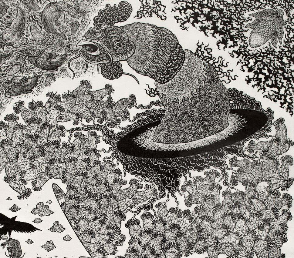 Jesse Shaw"American Halo IV", gravure à la linogravure2012