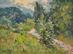 Cette esquisse à l'air libre peinte par des artistes dans le village de Karmanovo, dans la région de Tver, en 2002, est un paysage à couper le souffle, rayonnant de tranquillité et d...