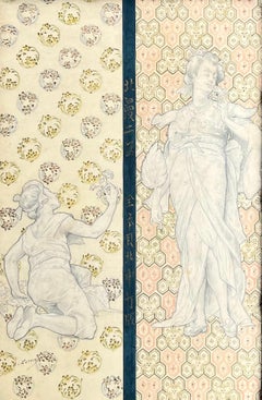 Dessin académique d'un nu masculin à la mine de plomb et au crayon de couleur par Mark Beard 30 x 17.5 pouces 32.5 x 20.5 pouces encadré sur mesure dans une moulure en bois de ceri...
