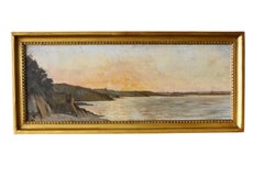 Peinture à l'huile sur bois d'un paysage ancien du 19e siècle par l'artiste français Charles Albert Porcher (1834-1895). Cette magnifique huile sur bois ancienne et atmosphérique es...