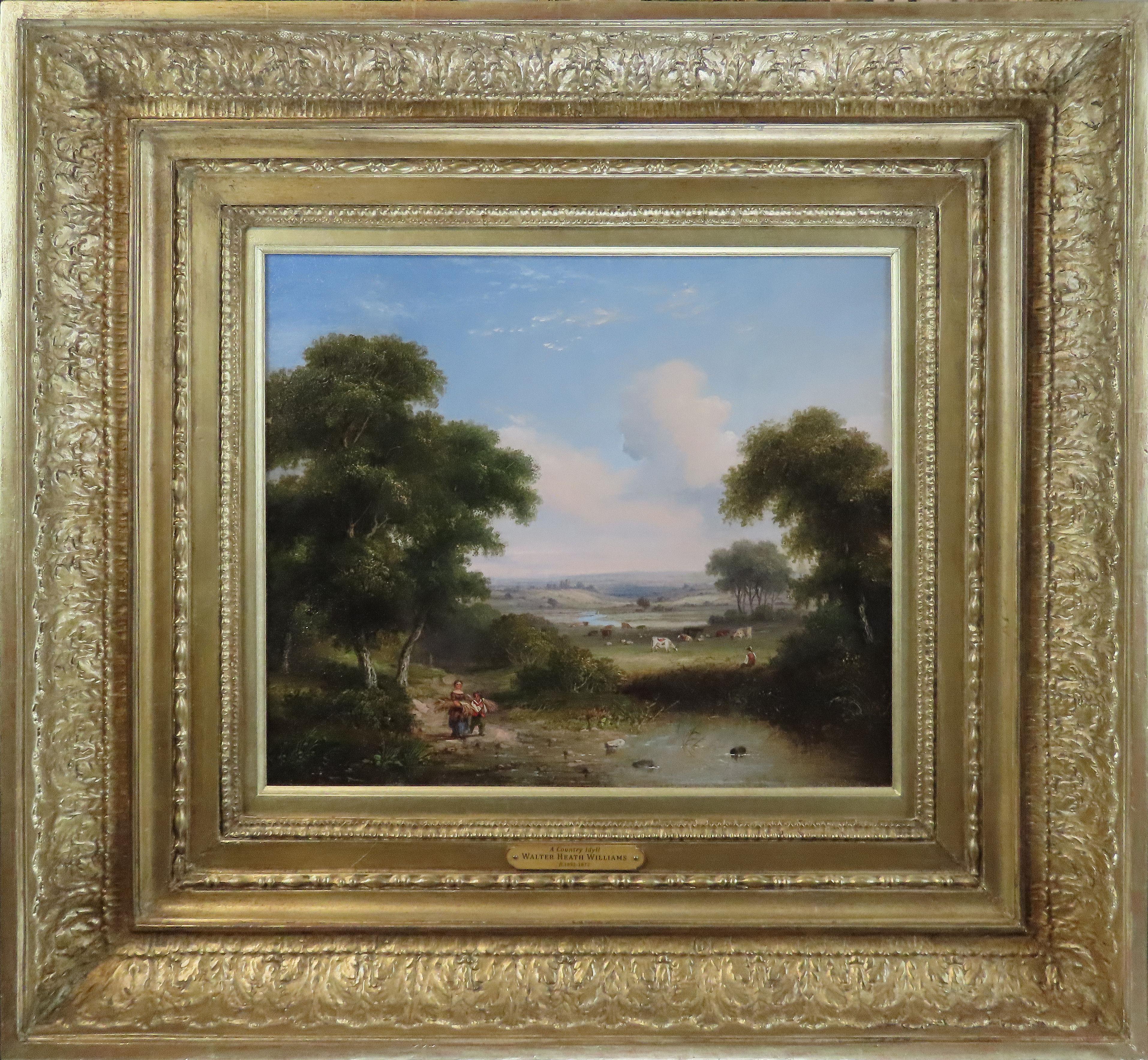 Peinture à l'huile ancienne représentant une jeune femme portant des paniers dans les champs par John Lewis Shonborn (1852-1931). Signé en bas à droite. Voici un portrait tout à fai...