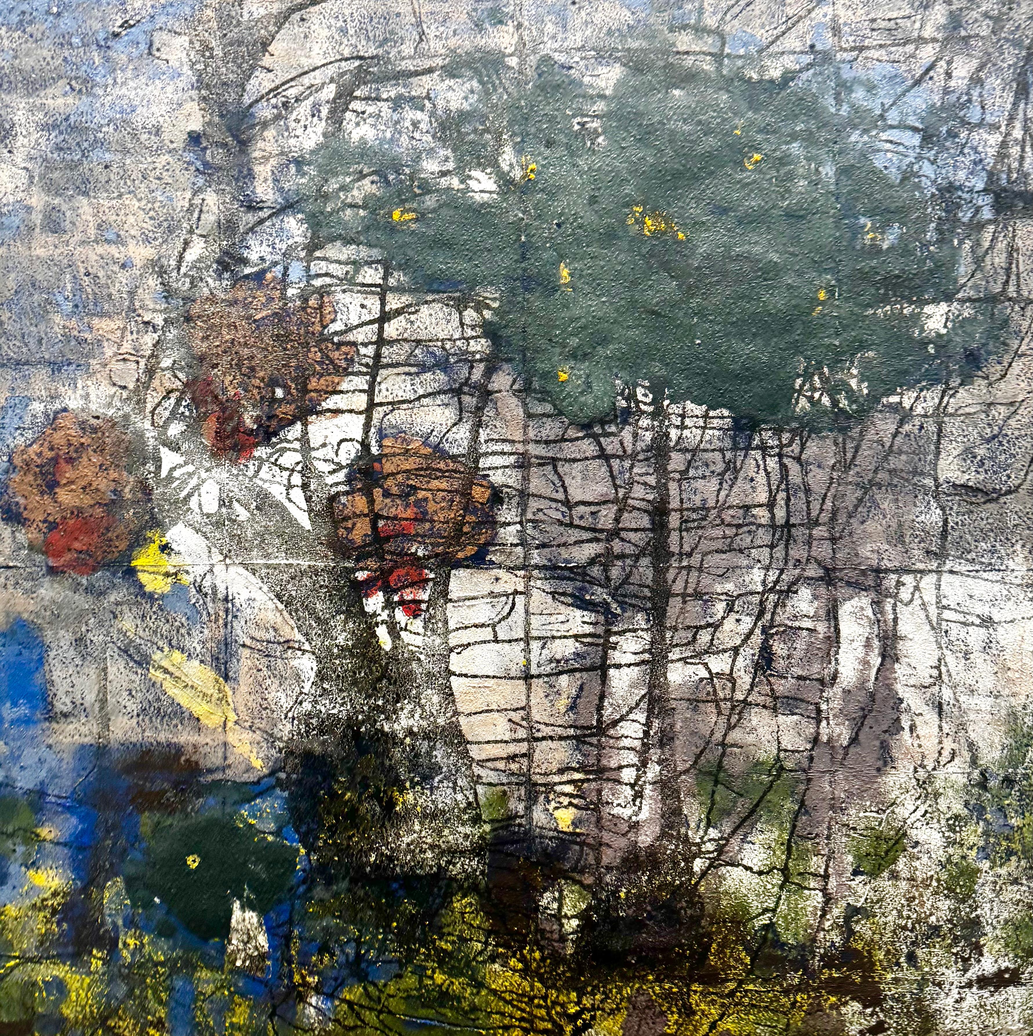 Cette pièce Artistics représente une composition abstraite avec l'utilisation de techniques mixtes et de motifs audacieux, produisant une œuvre visuellement texturée et riche en couc...