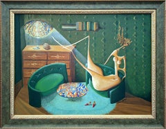 Titre : Homme d'intérieur (d'après Fernando Botero) Artistics : Sanz (peintre espagnol, actif fin XXe - début XXIe siècle) Année : vers 2000 Médium : Huile sur toile Dimensions (...