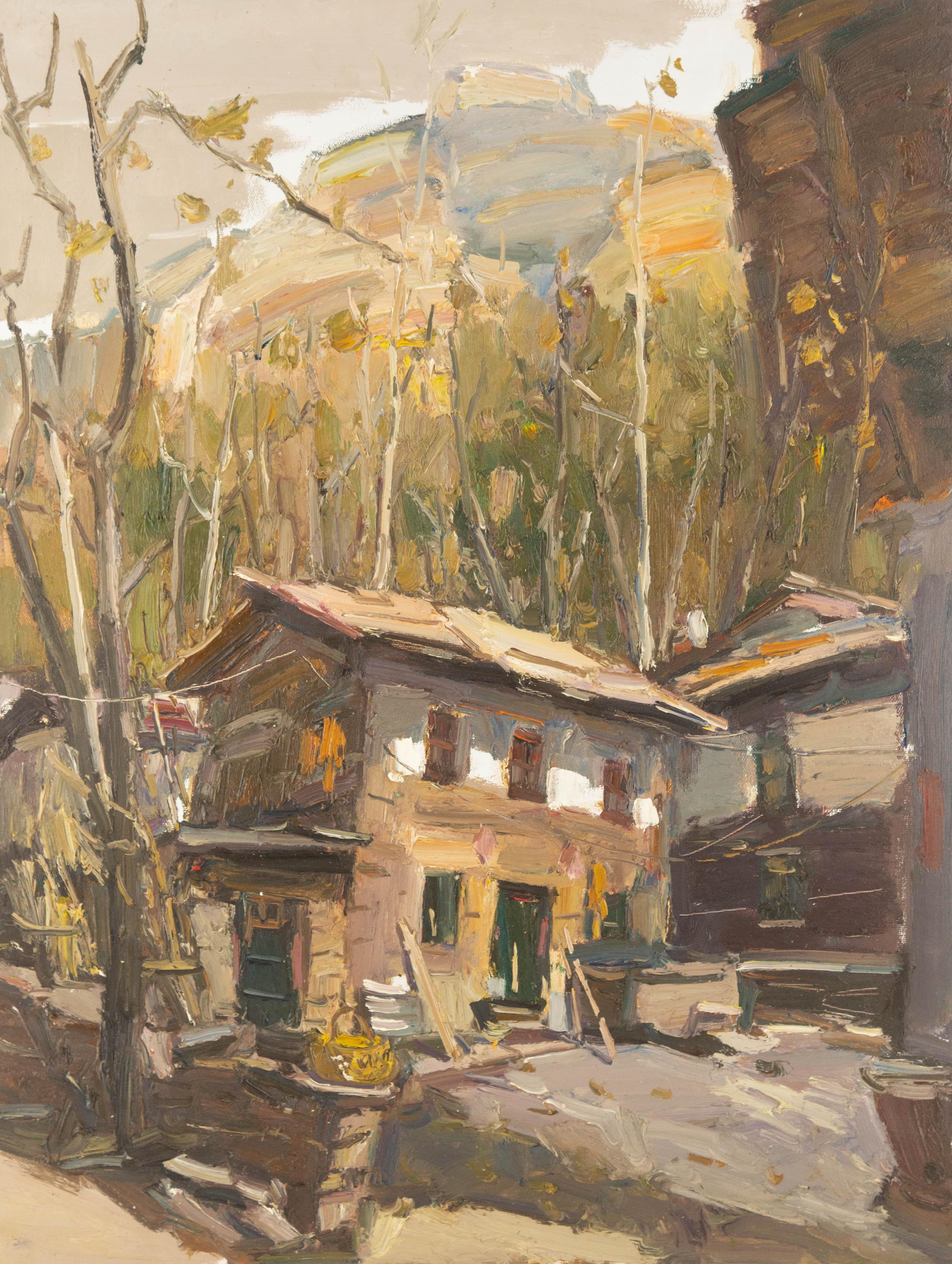 "Bigli" - Peinture à l'huile contemporaine réaliste originale sur les pâturages pour chevaux.